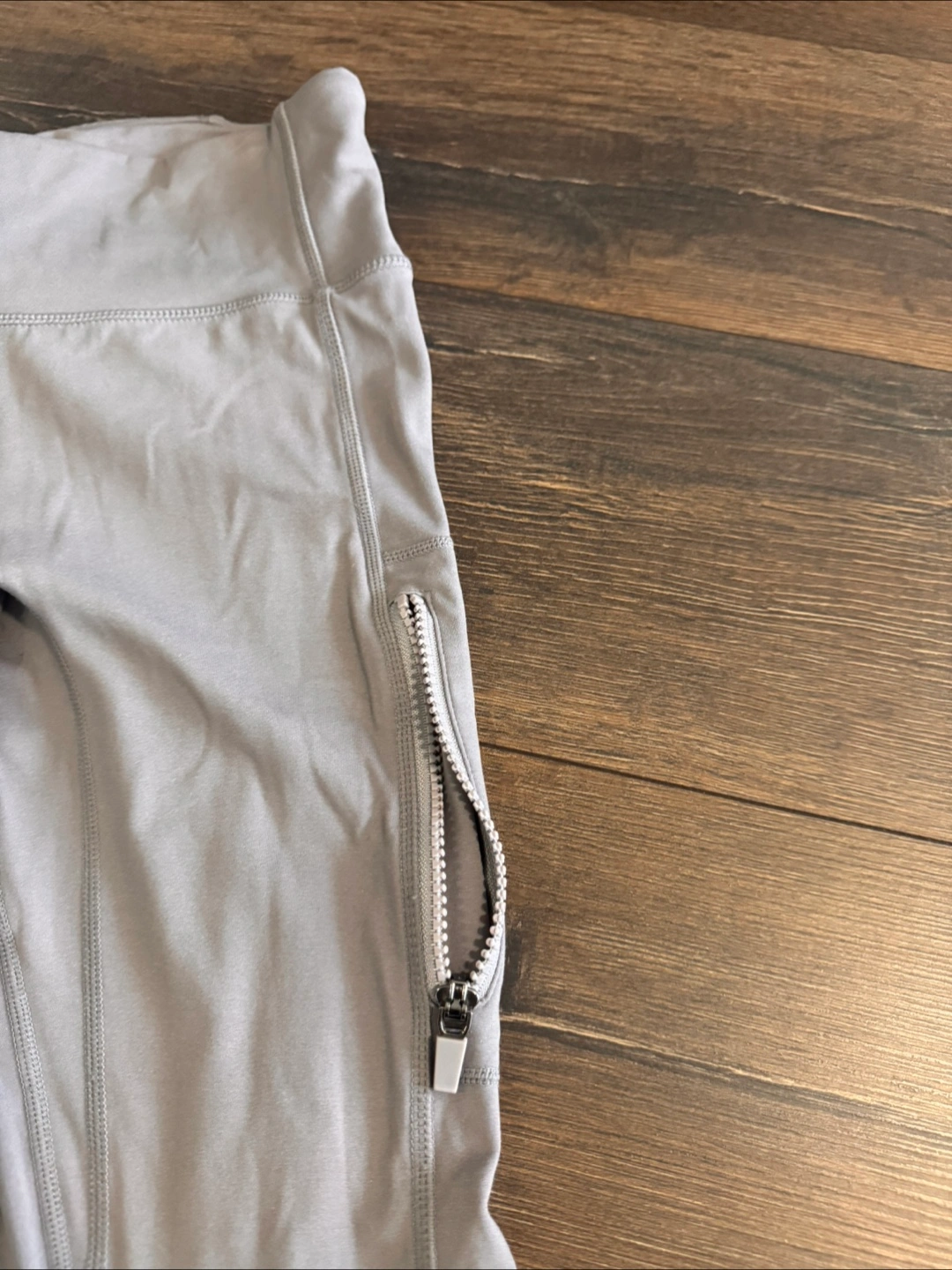 Selling a pair of Motion365 leggings made by FabLetics. They're a stylish grey colour and feature a convenient zipper detail. Great for workouts or just lounging around!