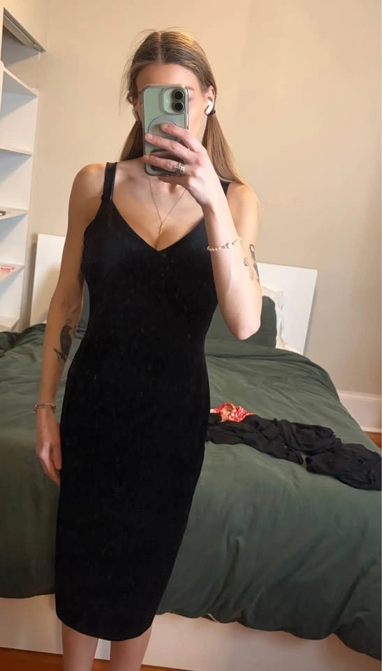 Gorgeous, soft, black velvet dress! Love it so much, but unfortunately a bit big on me. Could fit a small to medium! $15 dollars OR best OFFER! Pick up preferred, but drop off available in the Victoria area.