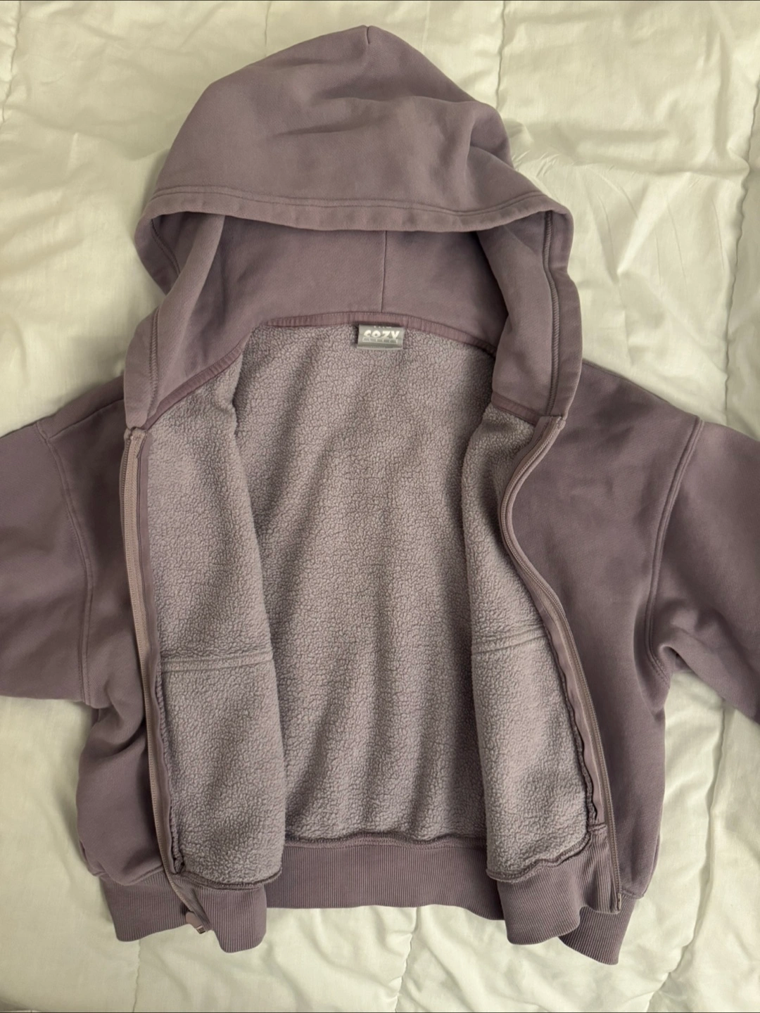 LIKE NEW ARITZIA TNA COZY FLEECE BOYFRIEND ZIP UP LILIAC HOODIE SIZE XS