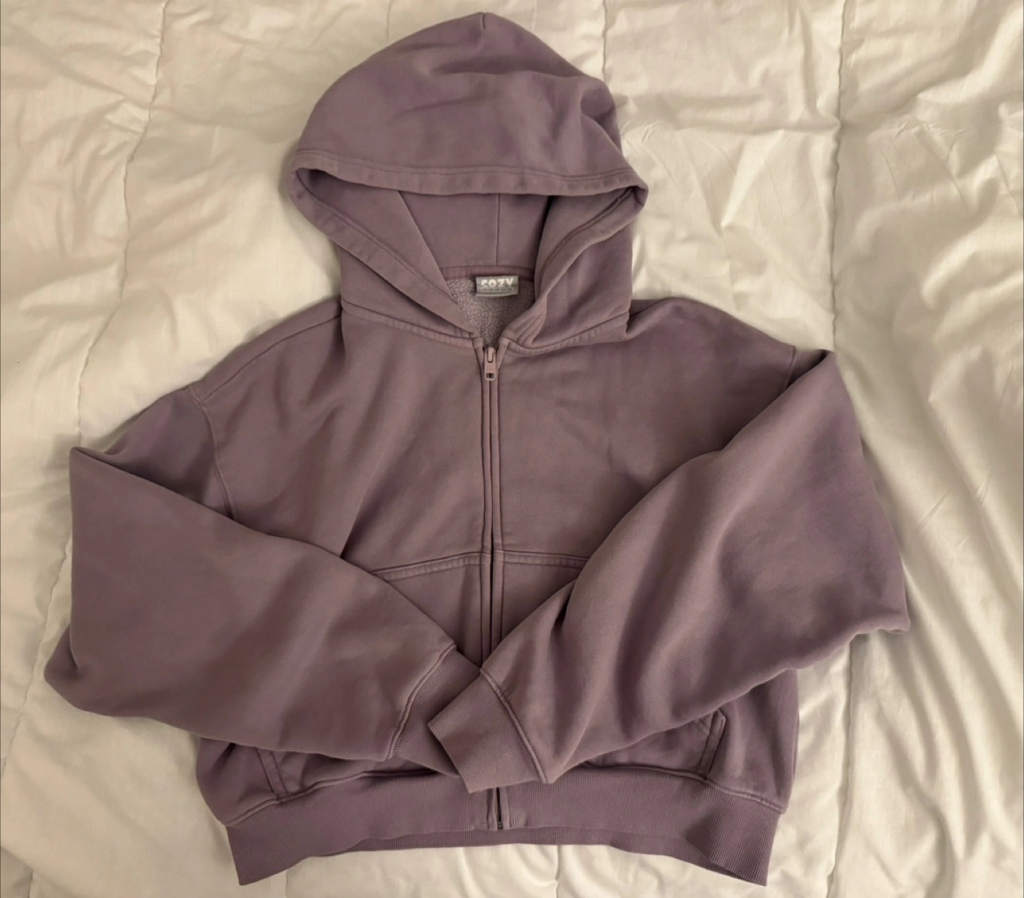 LIKE NEW ARITZIA TNA BOYFRIEND ZIP UP LILIAC HOODIE SIZE XS