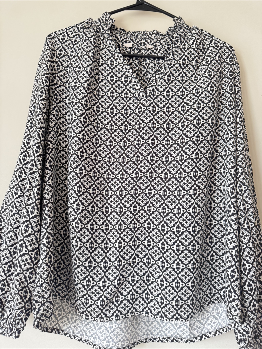 Here's a cute black and white patterned blouse from George! It's perfect for adding a bit of style to your wardrobe. The blouse features a unique pattern and comfortable fit, making it a great choice for everyday wear