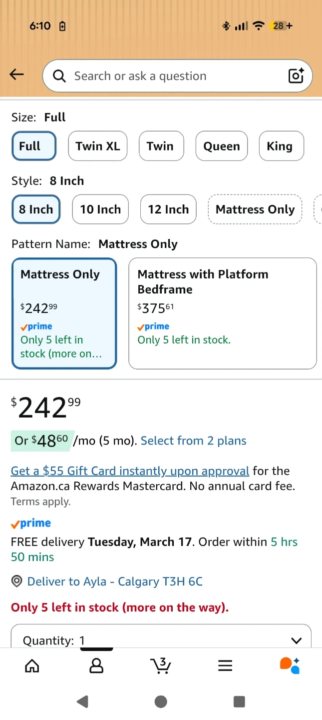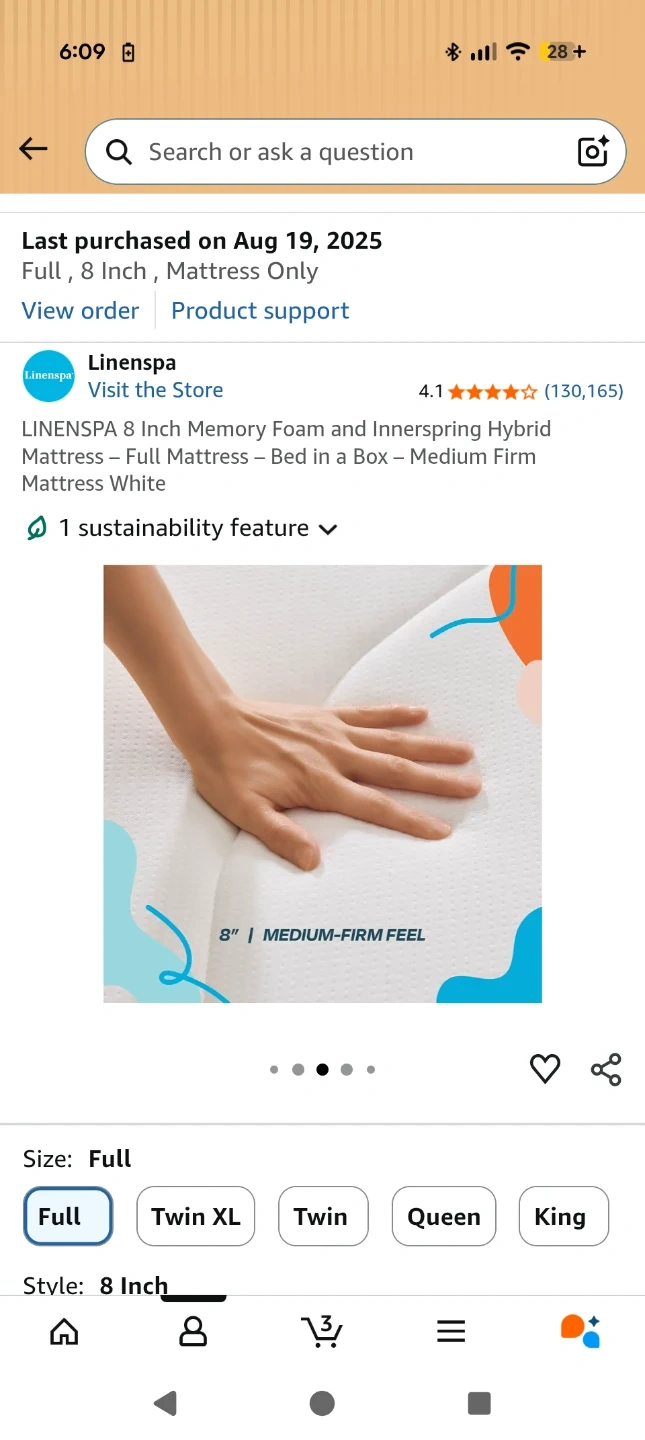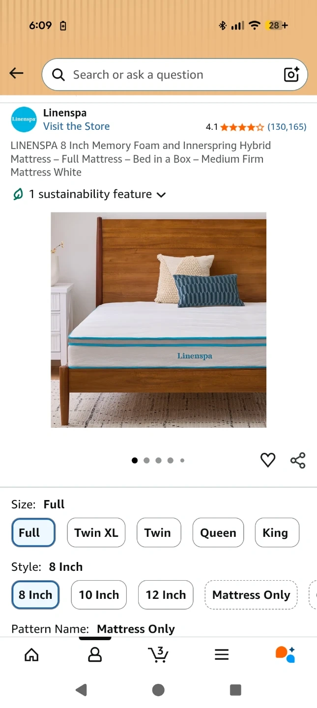 This is a LINENspA 8-inch hybrid mattress. It's a full-size mattress with memory foam and innerspring. It offers a medium-firm feel.