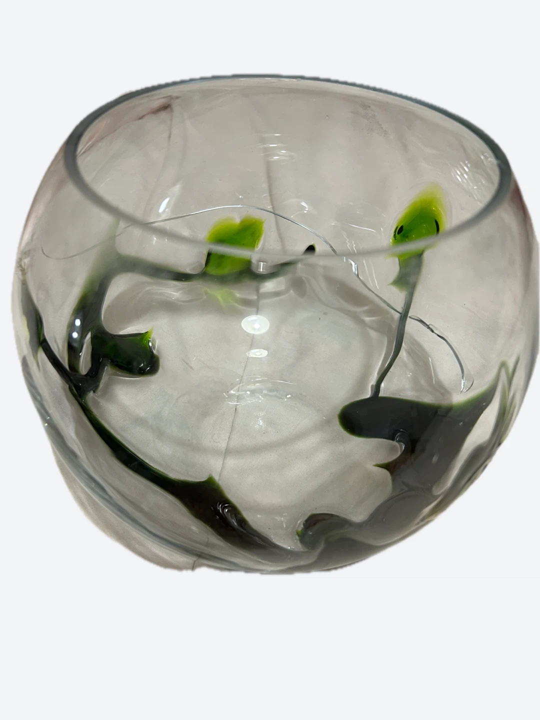 Giving away a clear glass vase with a unique green floral design. It's a beautiful piece that would look great in any home.