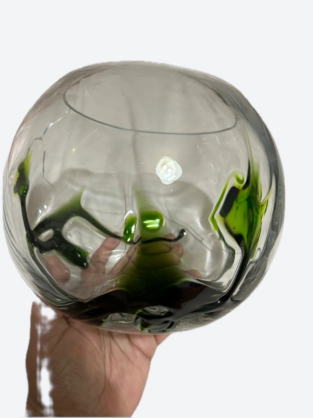 Giving away a clear glass vase with a unique green floral design. It's a beautiful piece that would look great in any home.