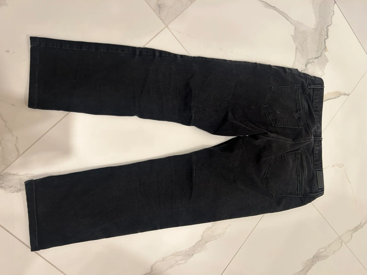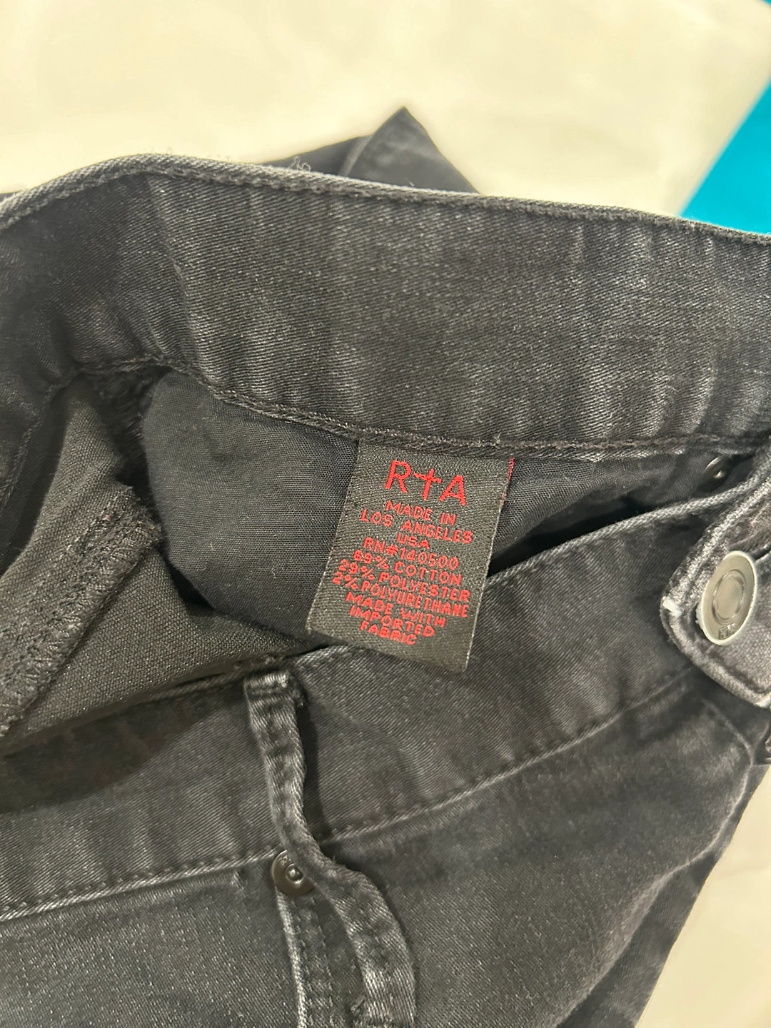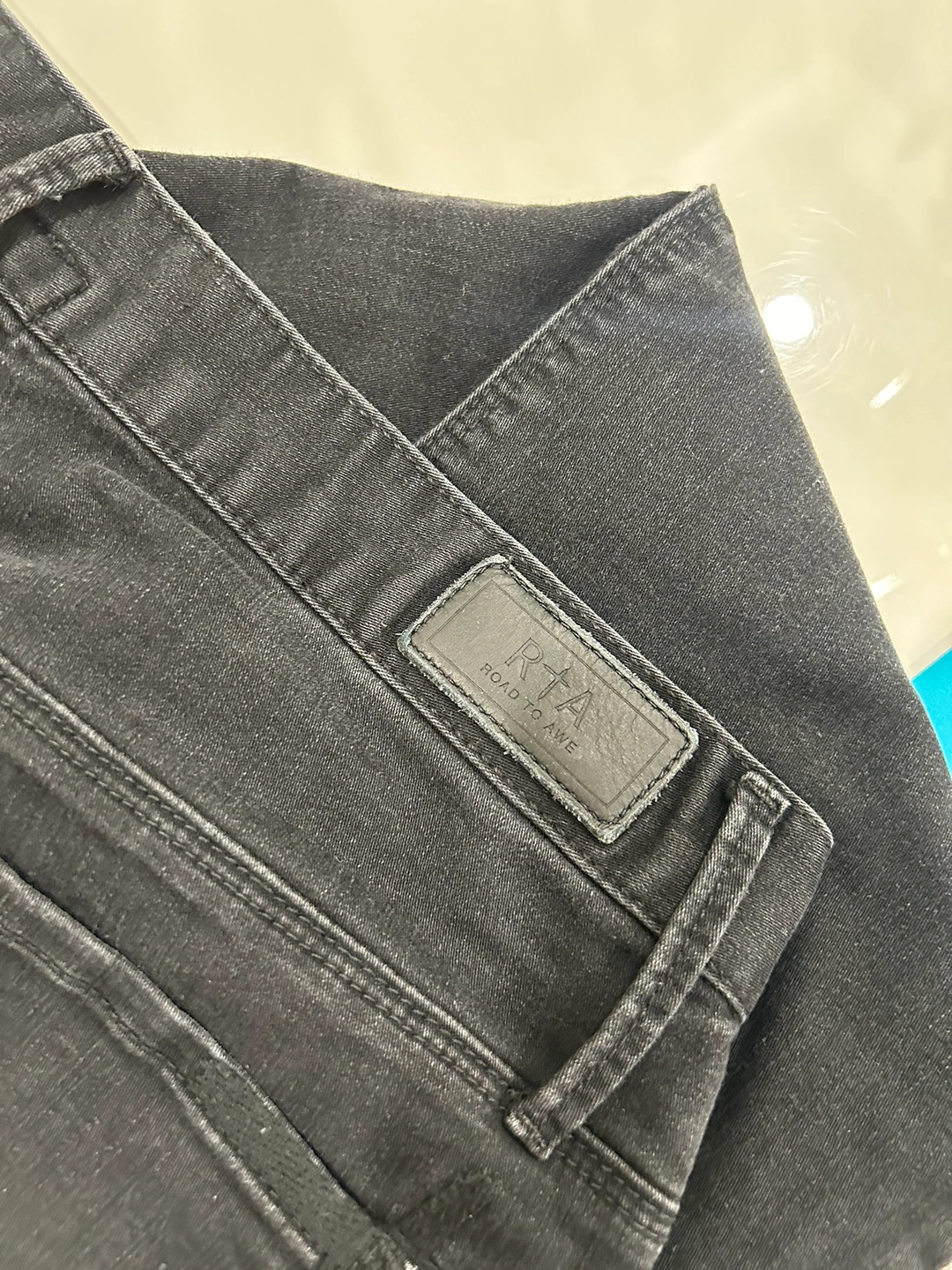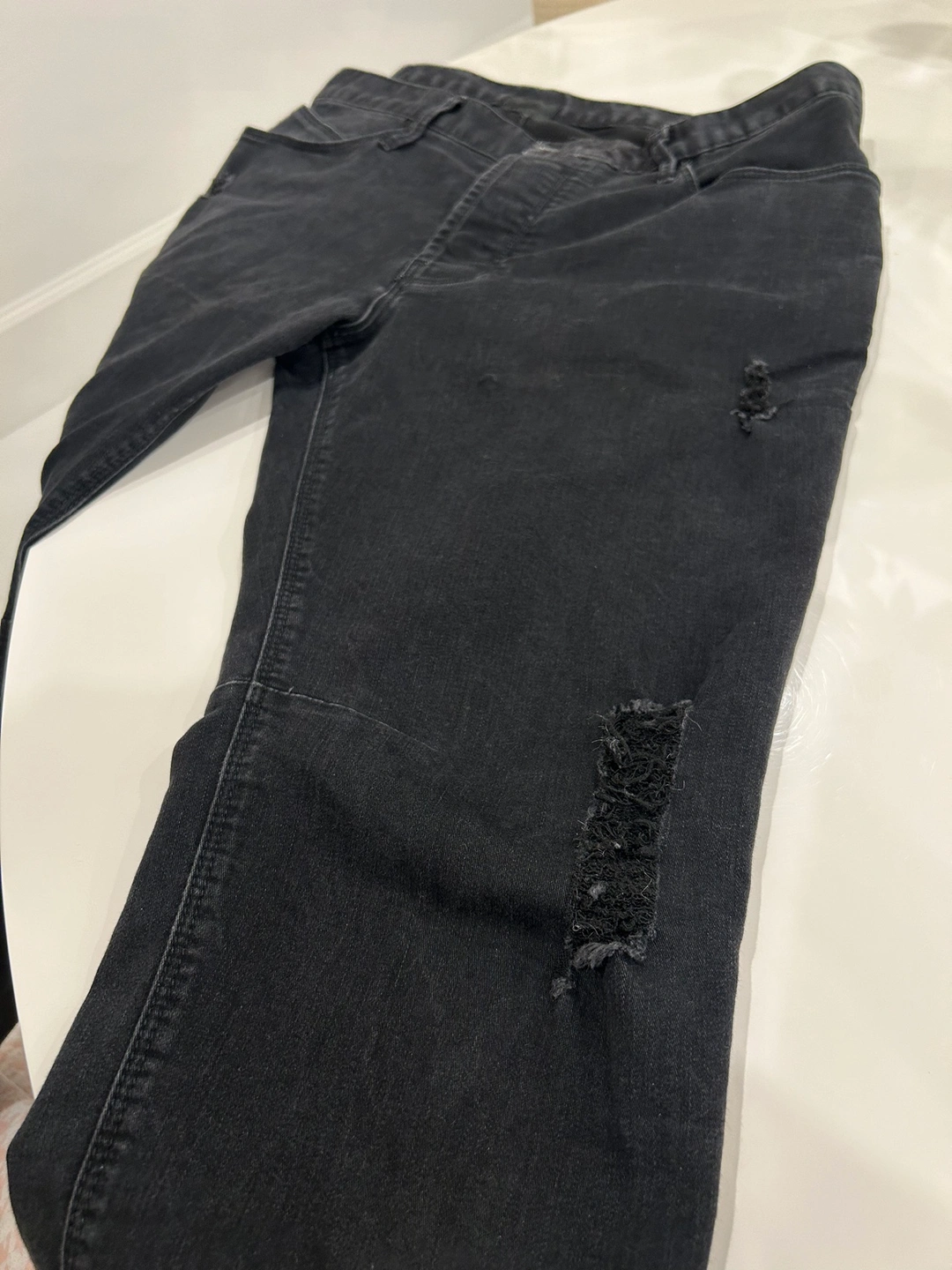 Black distressed jeans with a relaxed fit. Made in Los Angeles.
