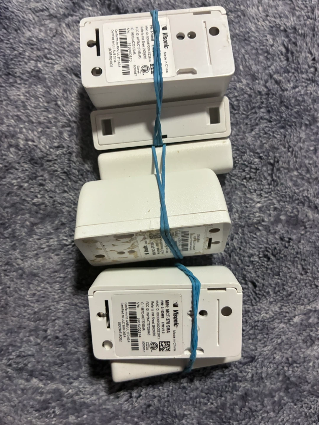 This is a set of 3 Visonic MCT-370 SMA wireless door/window contact sensors. They are designed for security systems.