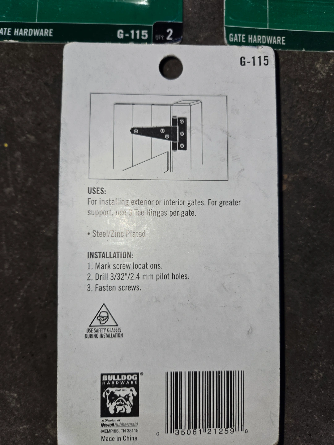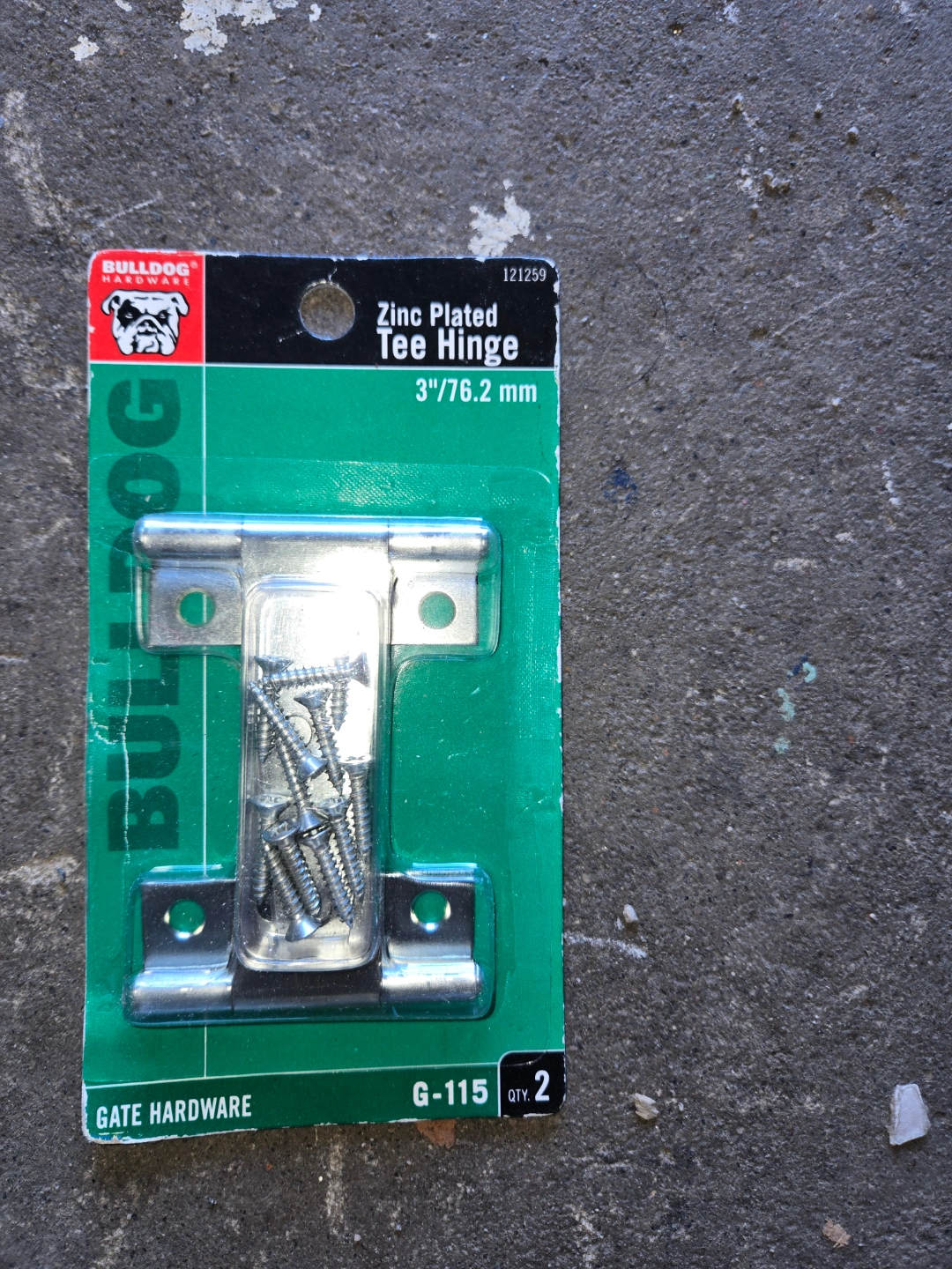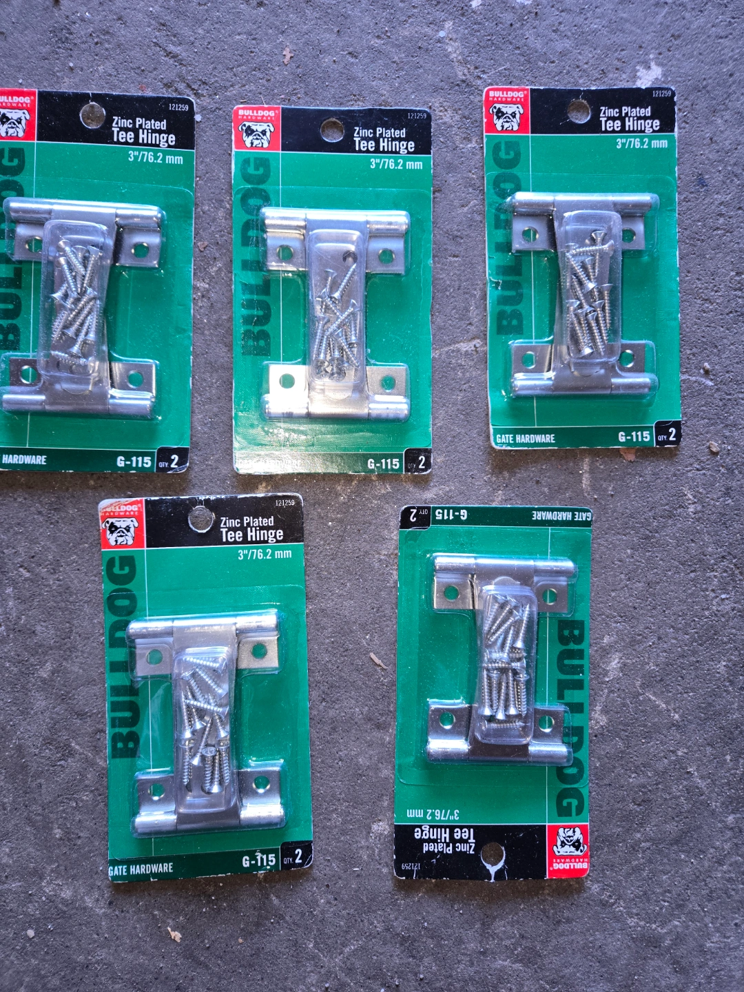 $4 each or $15 for 5set Three-inch hinges, includes screws. Gate hardware.