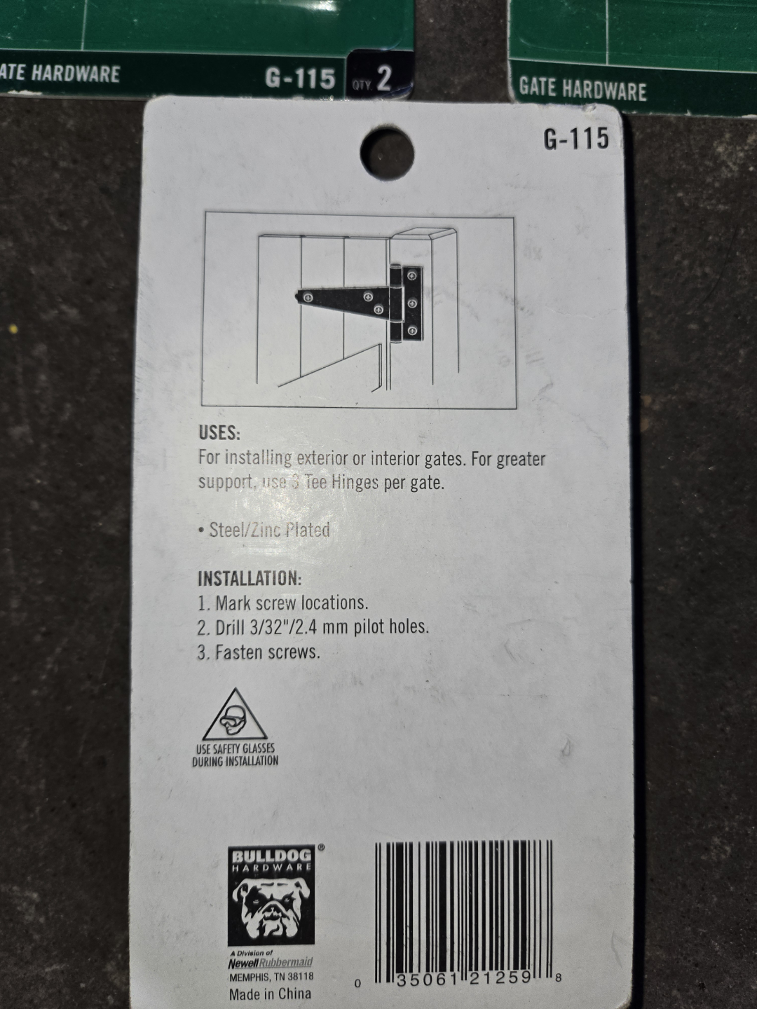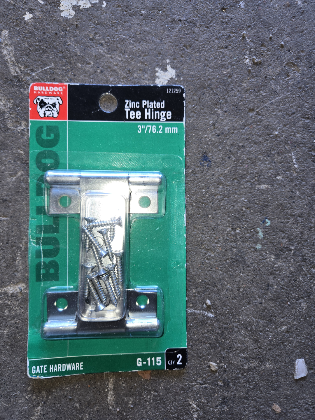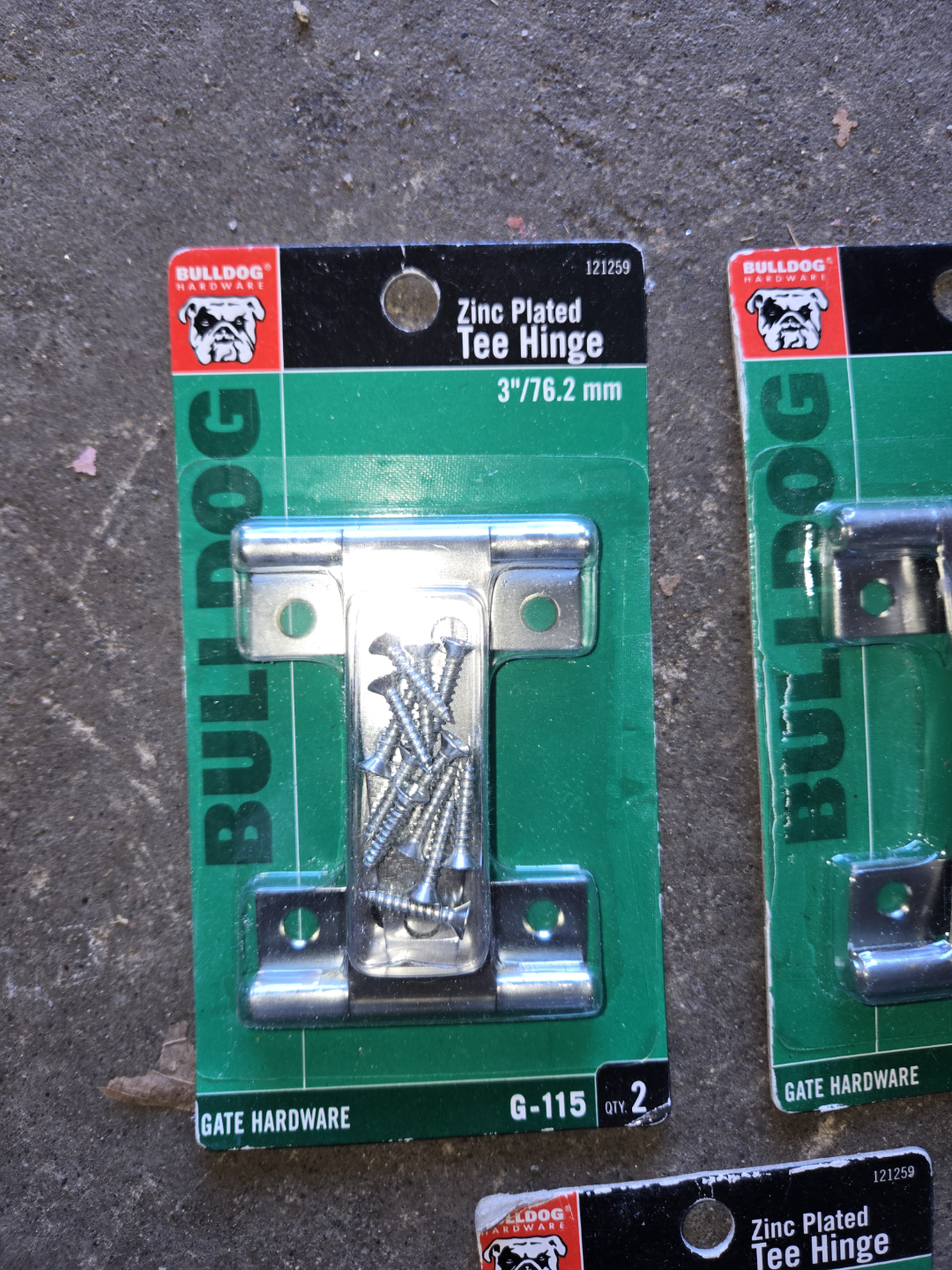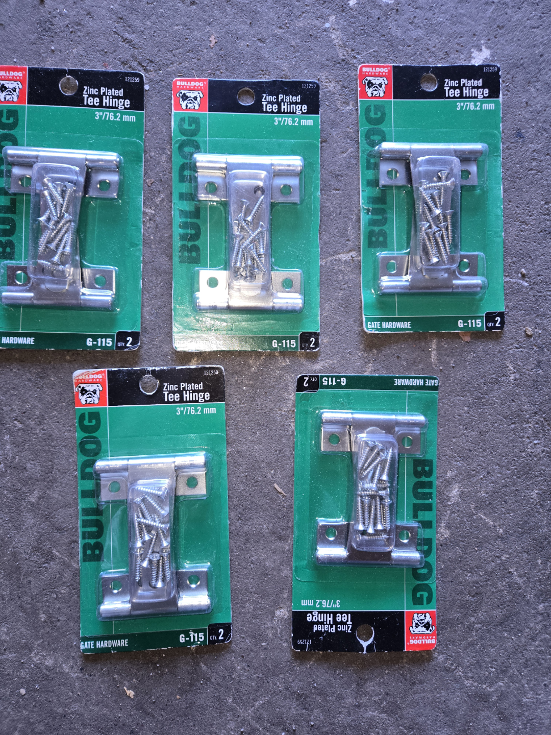 $4 each or $15 for 5set Three-inch hinges, includes screws. Gate hardware.