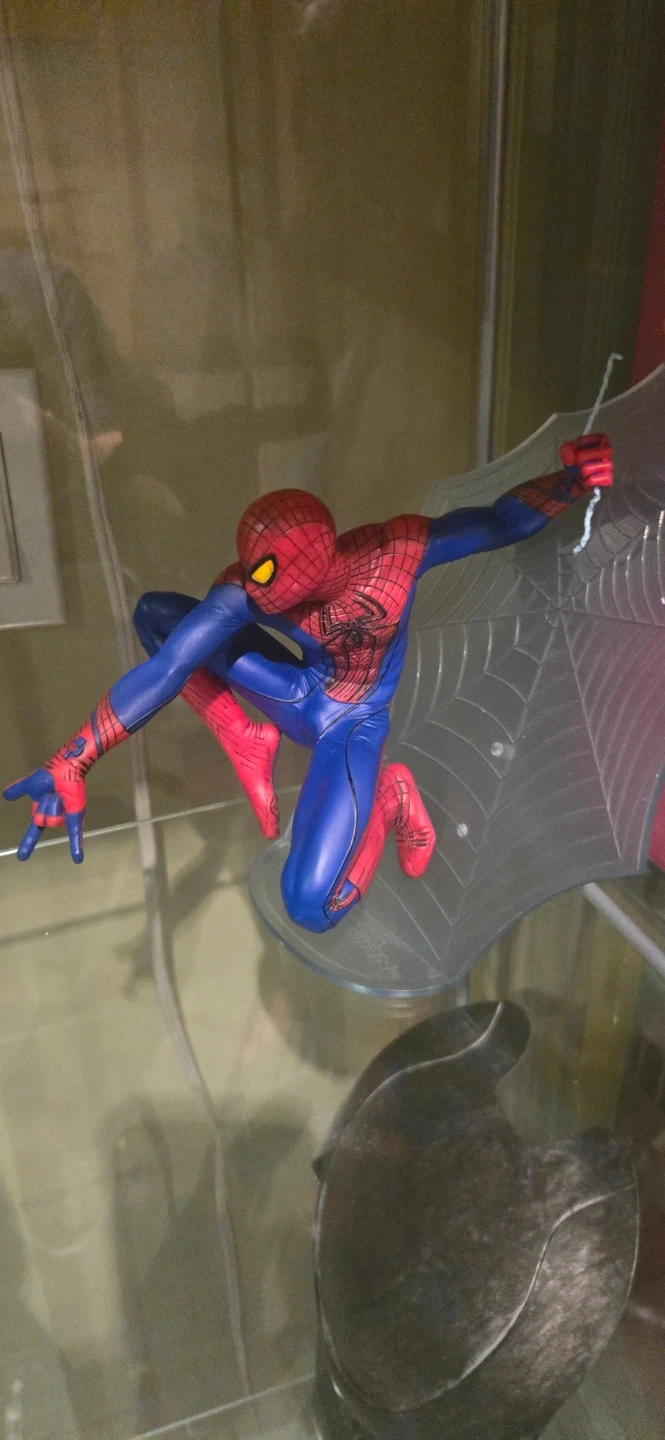 A detailed Spider-Man action figure in a dynamic pose. It comes with a clear web-themed display stand. This figure is perfect for any Marvel or Spider-Man fan's collection!