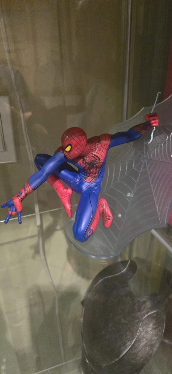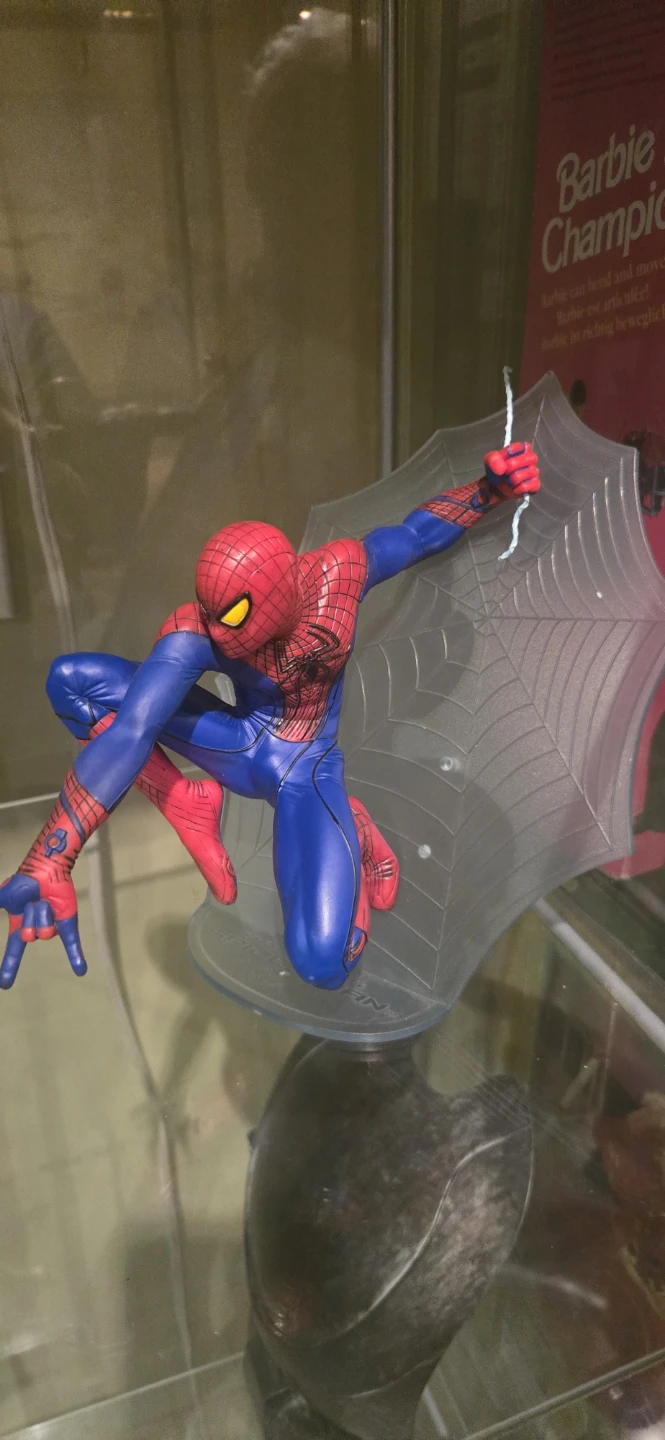 A detailed Spider-Man action figure in a dynamic pose. It comes with a clear web-themed display stand. This figure is perfect for any Marvel or Spider-Man fan's collection!