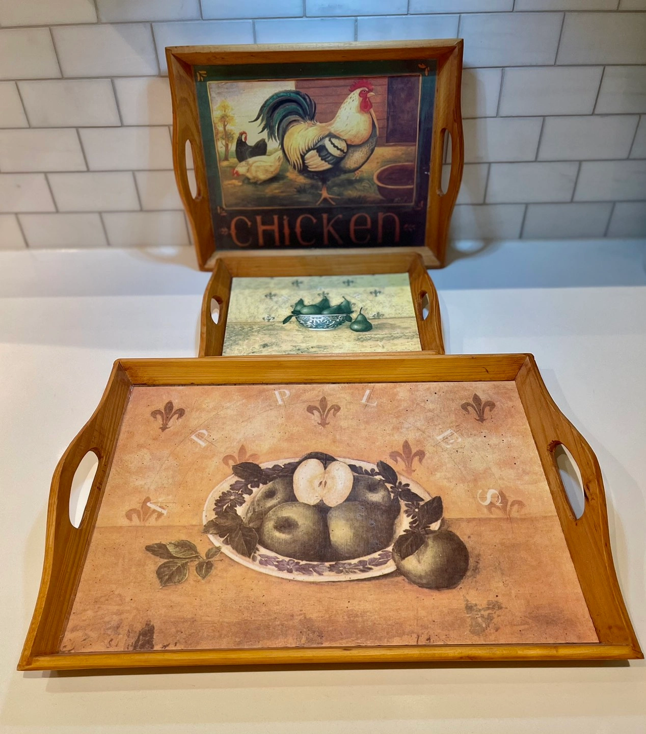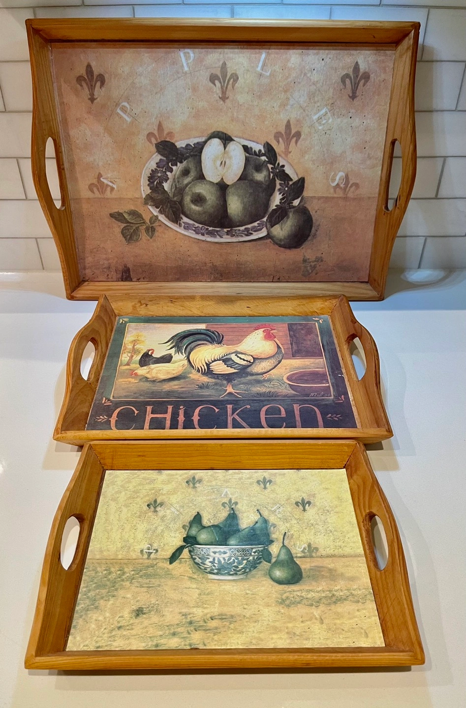 1033 piece rustic tray set; brand new never used . 16x11 3/4, 12 1/4 x 9 1/2inches, 9 3/4 x 7 1/2 inches Trafalgar & Dundas, Oakville.