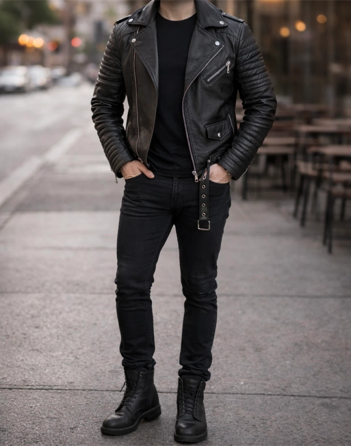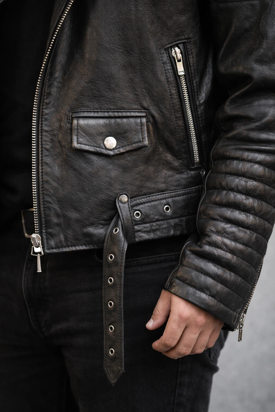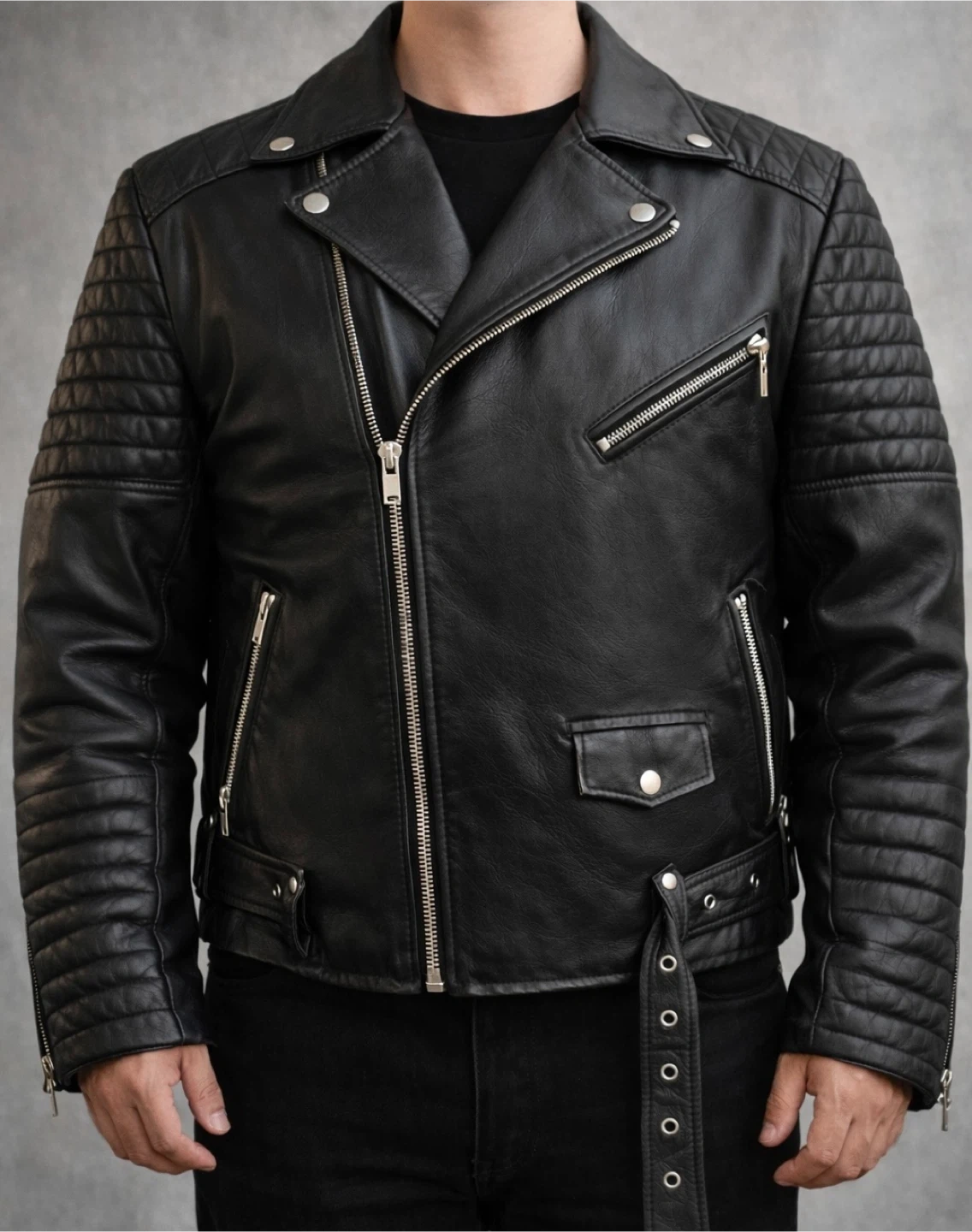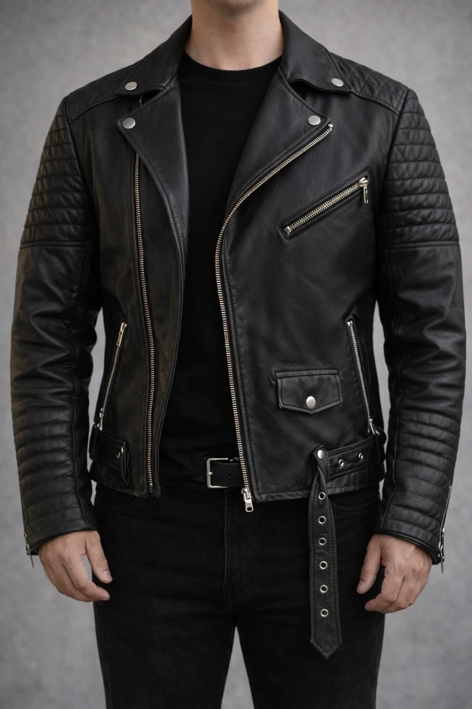 Genuine Leather Biker Jacket – Premium Quality – Size M