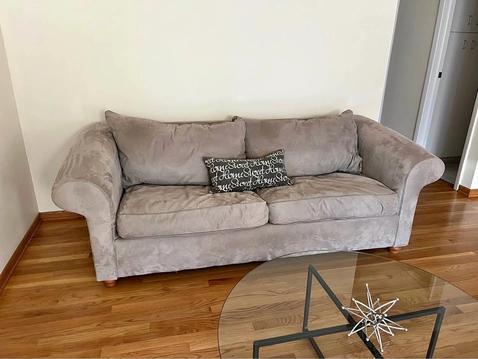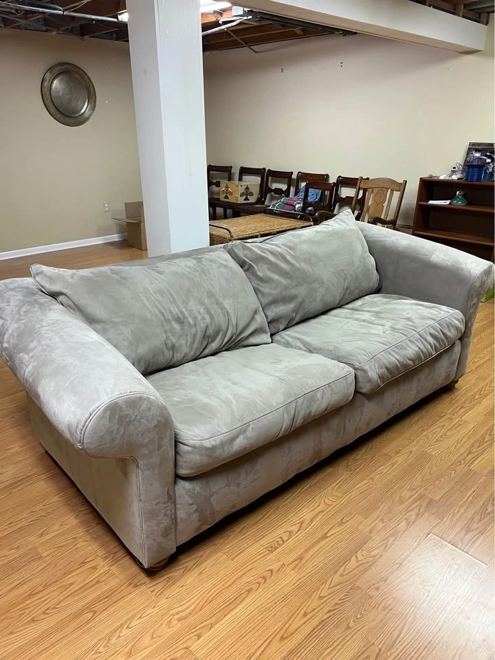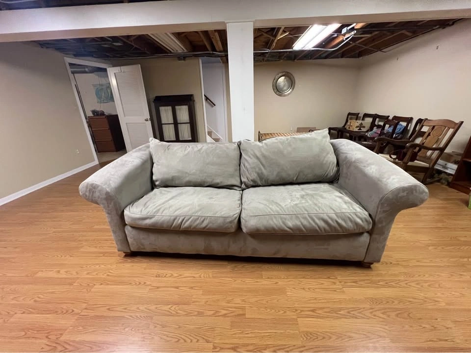 Couch sleeper sofa sage grey green Rowe Furniture. 89” wide, 7’ deep, 38” deep, 30” Tall. Perfect condition. Pick up in Villa Park, first floor, no stairs, easy access.