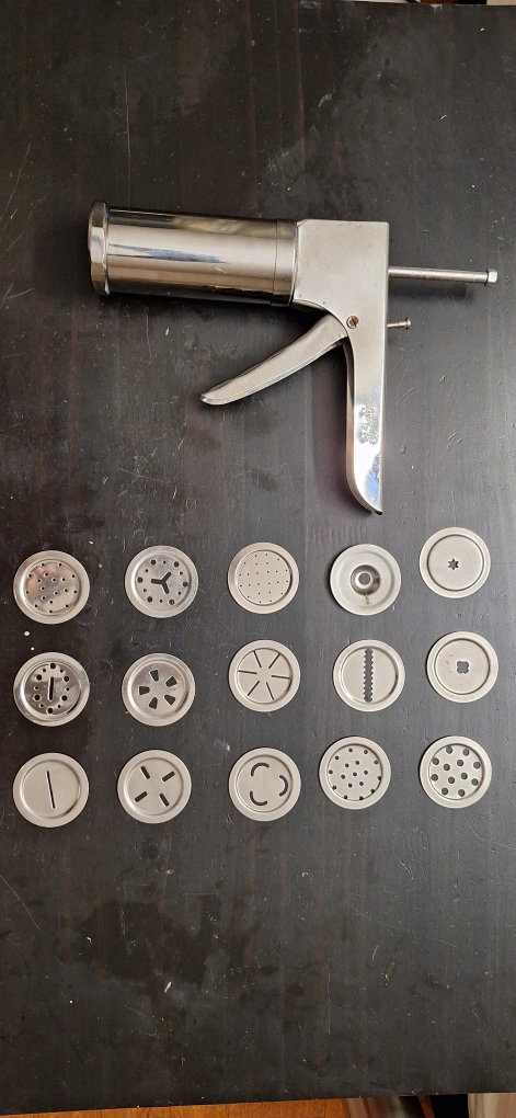 Selling a Kishan cookie press in great condition! It comes with 15 different discs for making a variety of cookie shapes. Perfect for baking up some tasty treats!