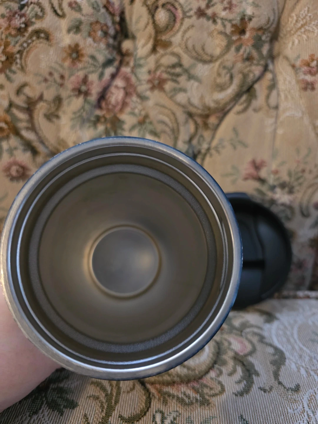 Selling a metal tumbler with a spooky coffin and bat design! It features a black background with white bat accents and a graphic that says "Blood For The Vampire". Perfect for anyone who loves a bit of gothic flair in their drinkware
