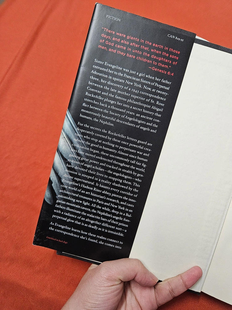 hardcover novel. Good condition. A captivating story of angels and their history.