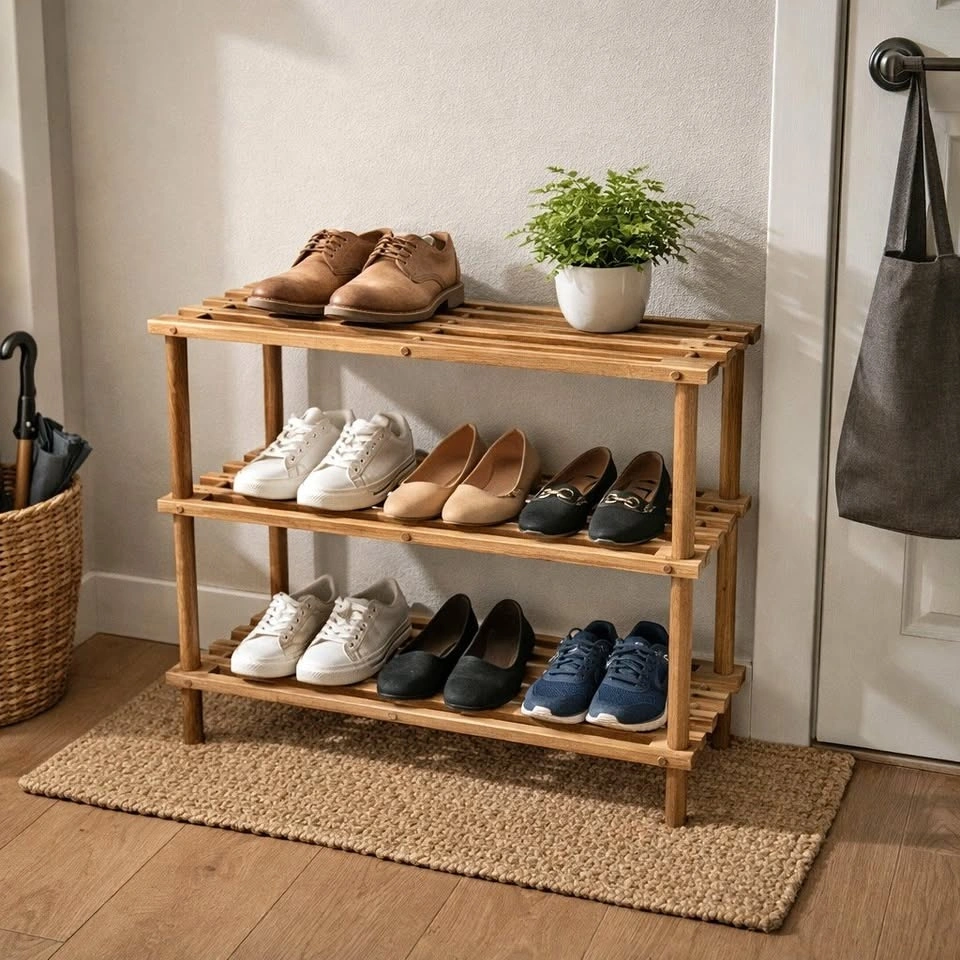 3-Tier Wooden Shoe Rack – Solid & Sturdy