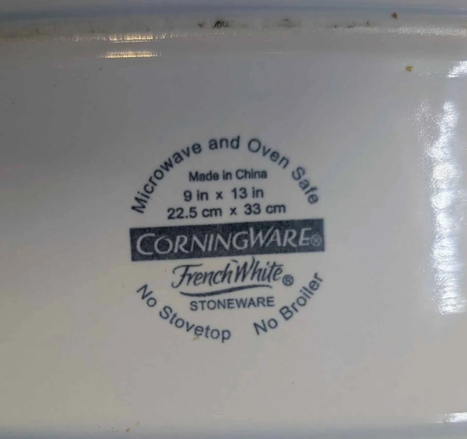 CorningWare French White Stoneware Casserole Dish 9x13 Microwave