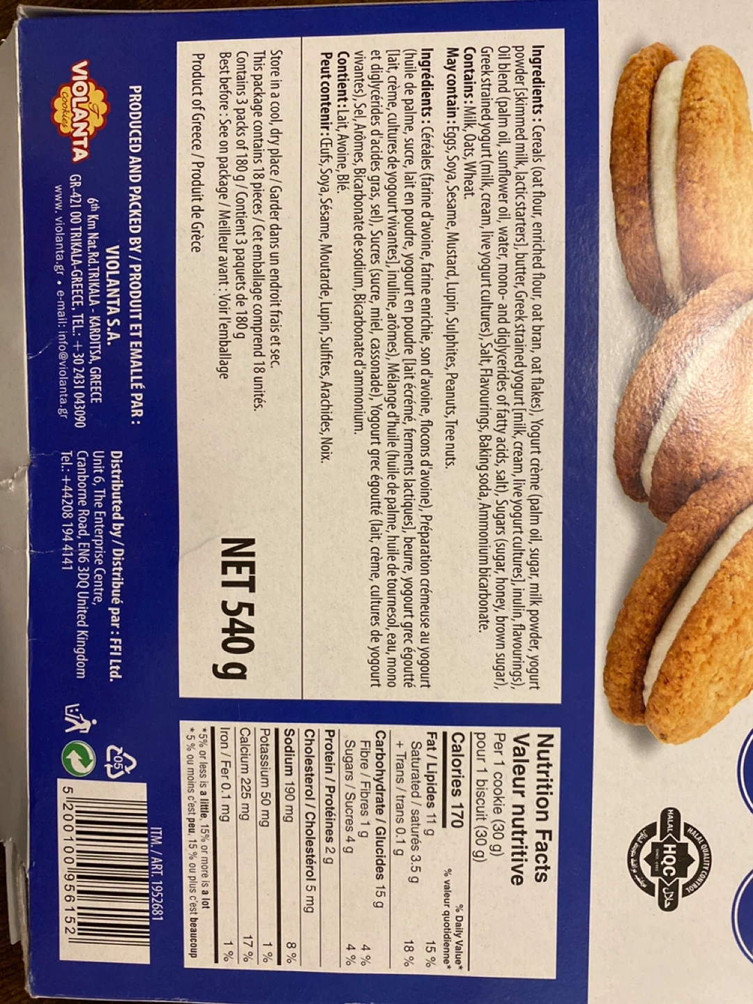 Violanta Oat Sandwich cookies feature a creamy Greek yogurt filling.