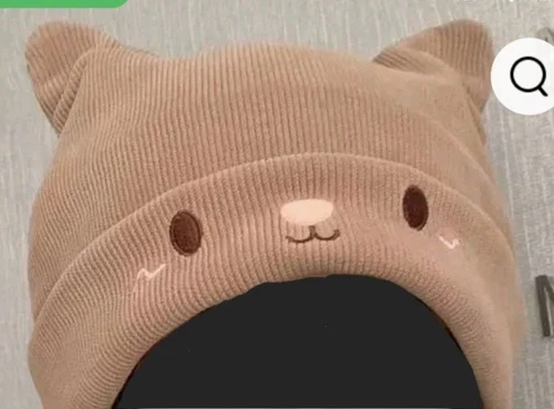 This is a cute and cozy beanie hat featuring a cartoon teddy bear design. It's a solid brown color and is one size fits most. Perfect for keeping warm during the colder months!