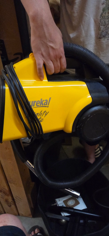 Selling a yellow Eureka Mighty Mite canister vacuum. It's in good condition and ready to help with your cleaning needs. Comes with the hose and attachments as pictured