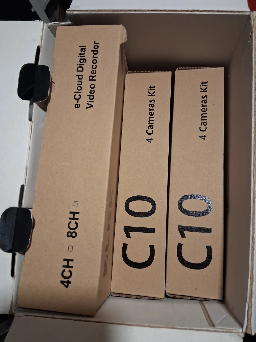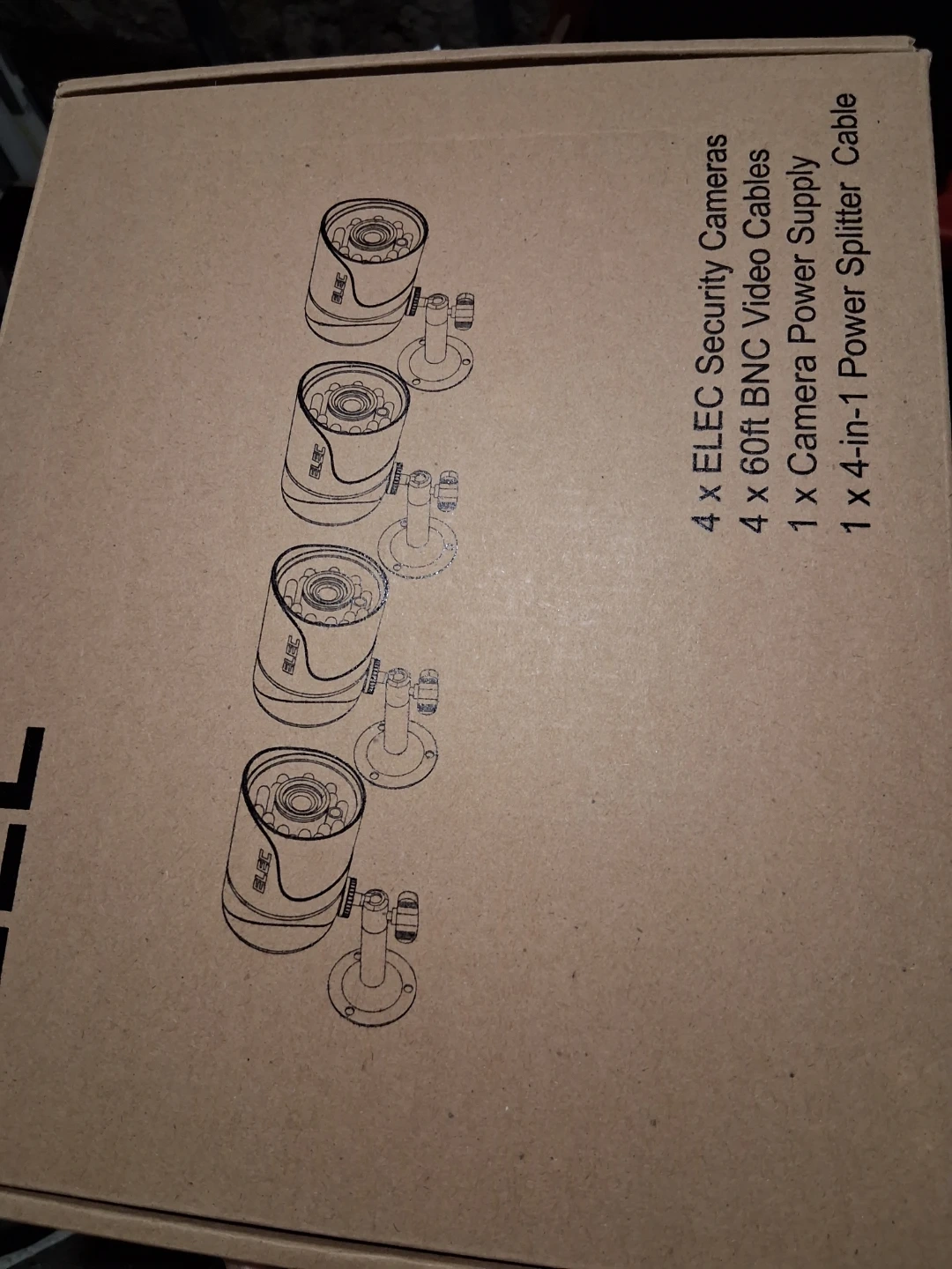 This ELEC e-Cloud Digital Video Recorder system comes with an 8-channel DVR and 4 security cameras. It includes 4 x 60ft BNC video cables, 1 x camera power supply, and 1 x 4-in-1 power splitter cable. Also included is a power supply for the DVR and a mouse. This kit's ready for installation!