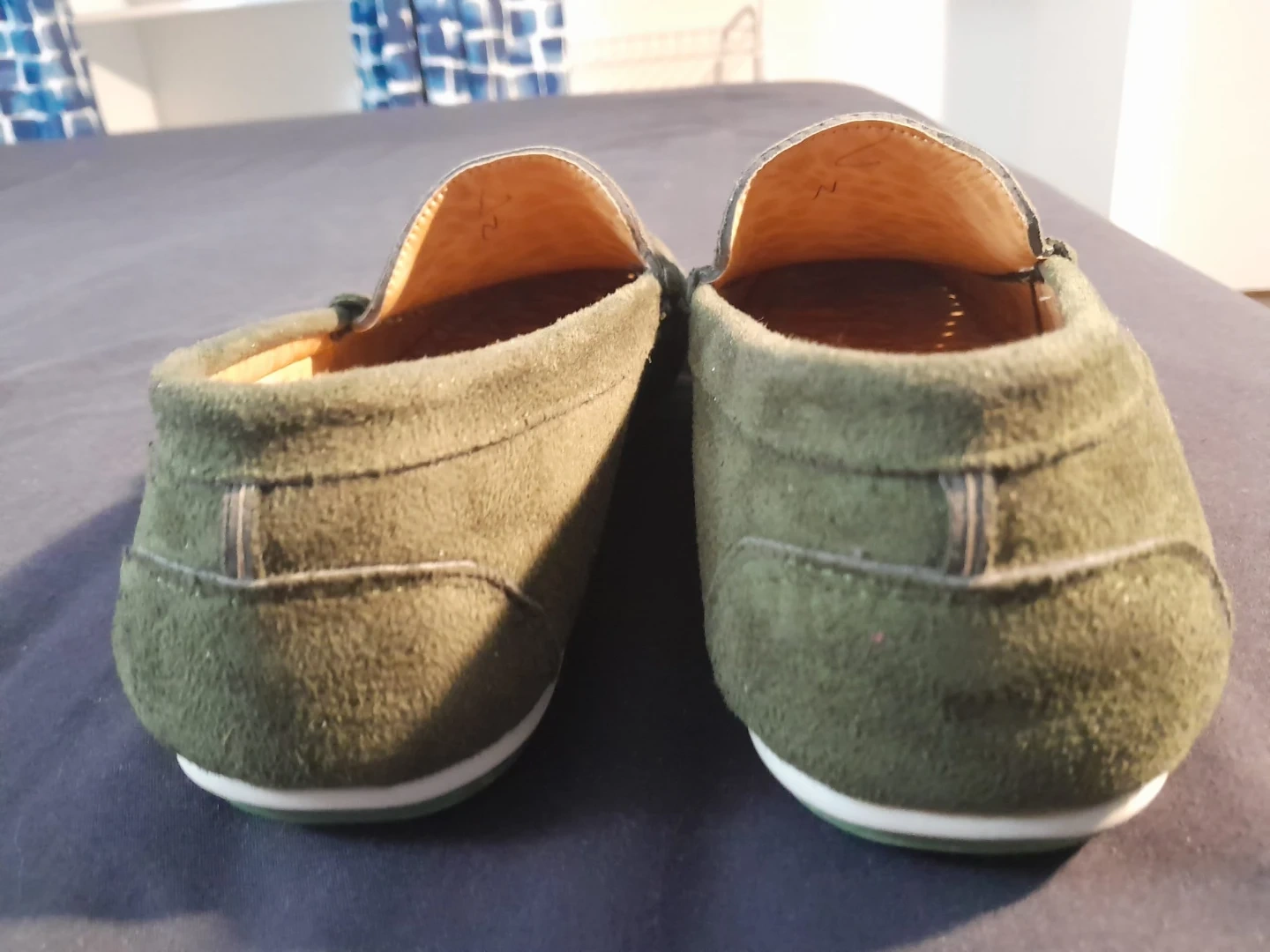 Hello friends,I am selling a pair of stylish, premium quality army green color suede shoes .They are very comfortable with padded lining Never worn ,brand new condition..It can be used with formal or casual wear .if interested Msg me.Price is fixed,already on excellent price .