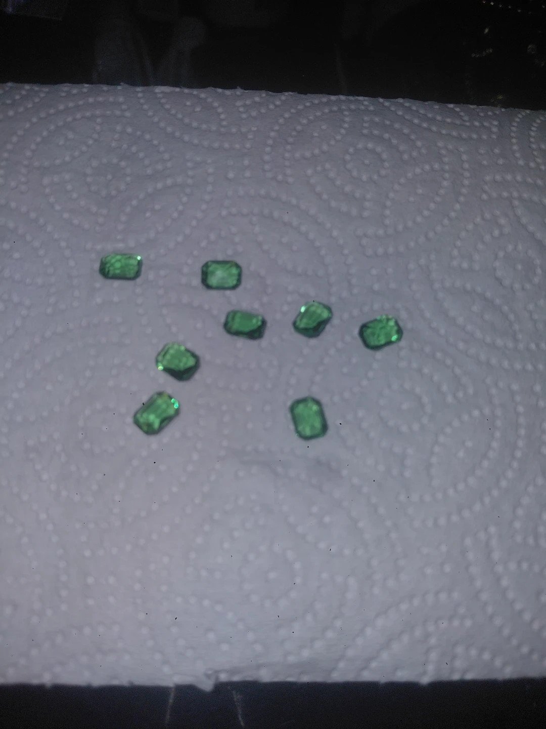 Set of 8 Green esmeraldas Rectangular Glass Gems