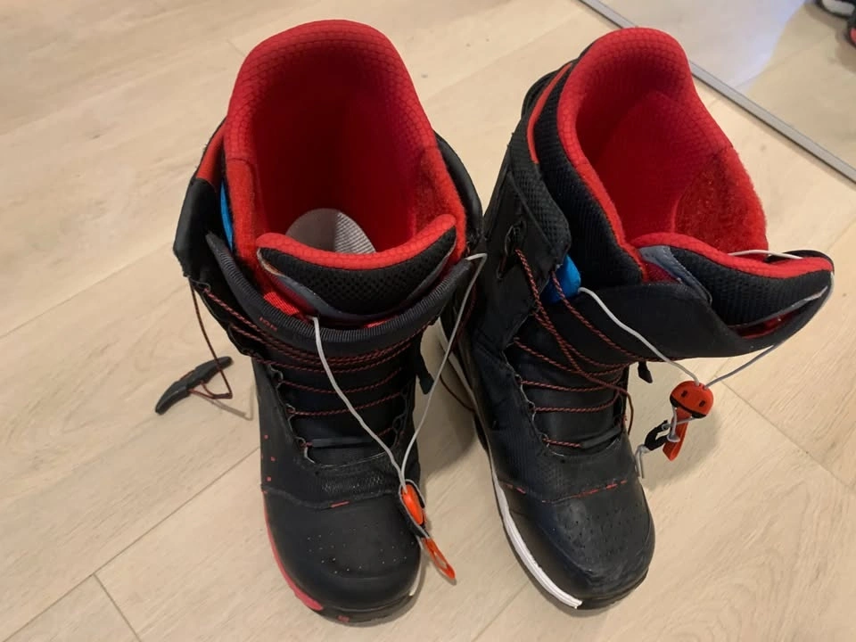 These boots are in very good condition, almost great. No odor or stains inside. These are the Burton Ion Pirelli snowboard boots, a high-performance, limited-edition collaboration. They feature a specialized outsole engineered by Pirelli, combining Burton’s Ion tech like Speed Zone™ lacing and Infinite Ride™ liners with a rubber compound and tread design inspired by winter tires for superior traction. They offer the option of extreme support or a softer feel depending on how tight you lace them. I haven't been snowboarding in a long time and need to sell them. Asking $200.