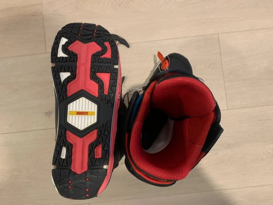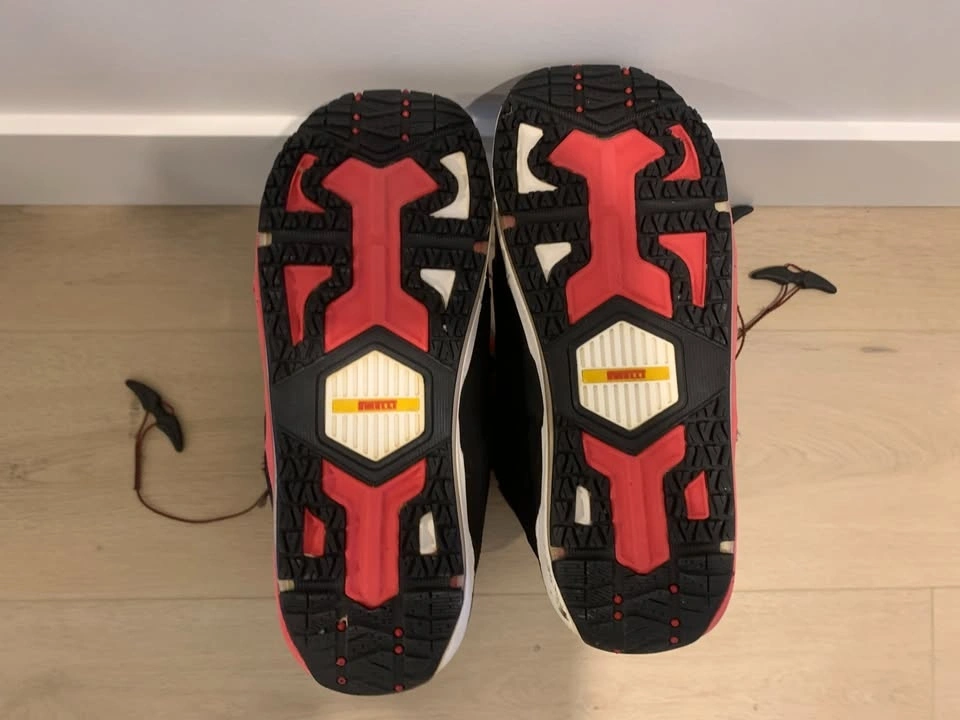 These boots are in very good condition, almost great. No odor or stains inside. These are the Burton Ion Pirelli snowboard boots, a high-performance, limited-edition collaboration. They feature a specialized outsole engineered by Pirelli, combining Burton’s Ion tech like Speed Zone™ lacing and Infinite Ride™ liners with a rubber compound and tread design inspired by winter tires for superior traction. They offer the option of extreme support or a softer feel depending on how tight you lace them. I haven't been snowboarding in a long time and need to sell them. Asking $200.