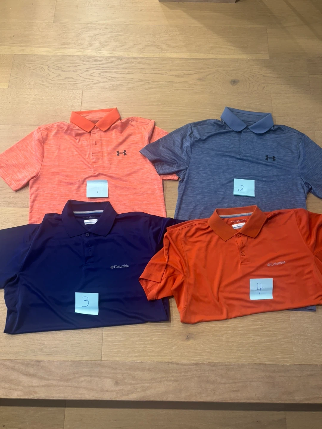 Four men's golf polo shirts from Under Armour and Columbia. Son has outgrown them like new. Smoke free home.
