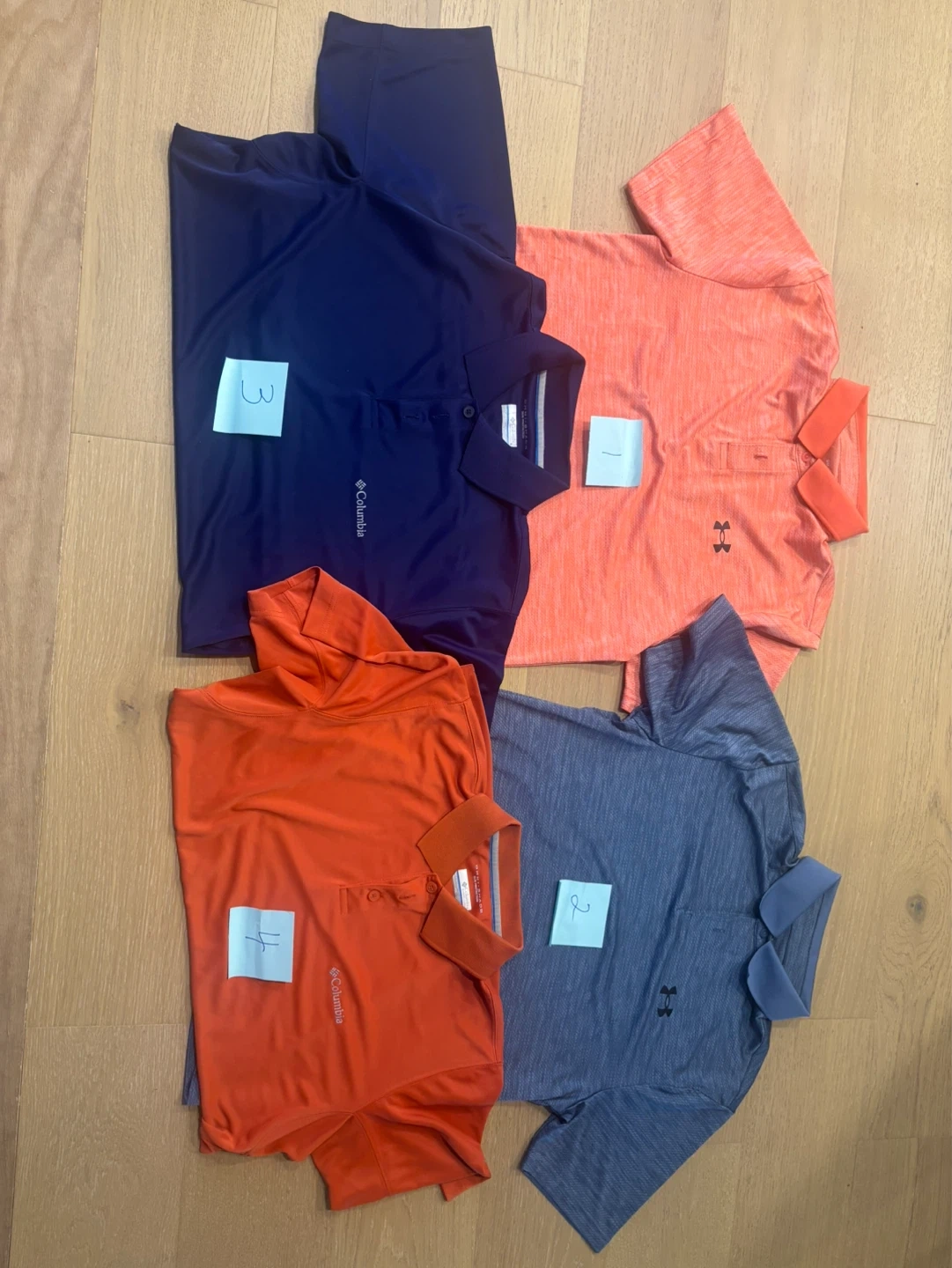 Four men's golf polo shirts from Under Armour and Columbia. Son has outgrown them like new. Smoke free home.
