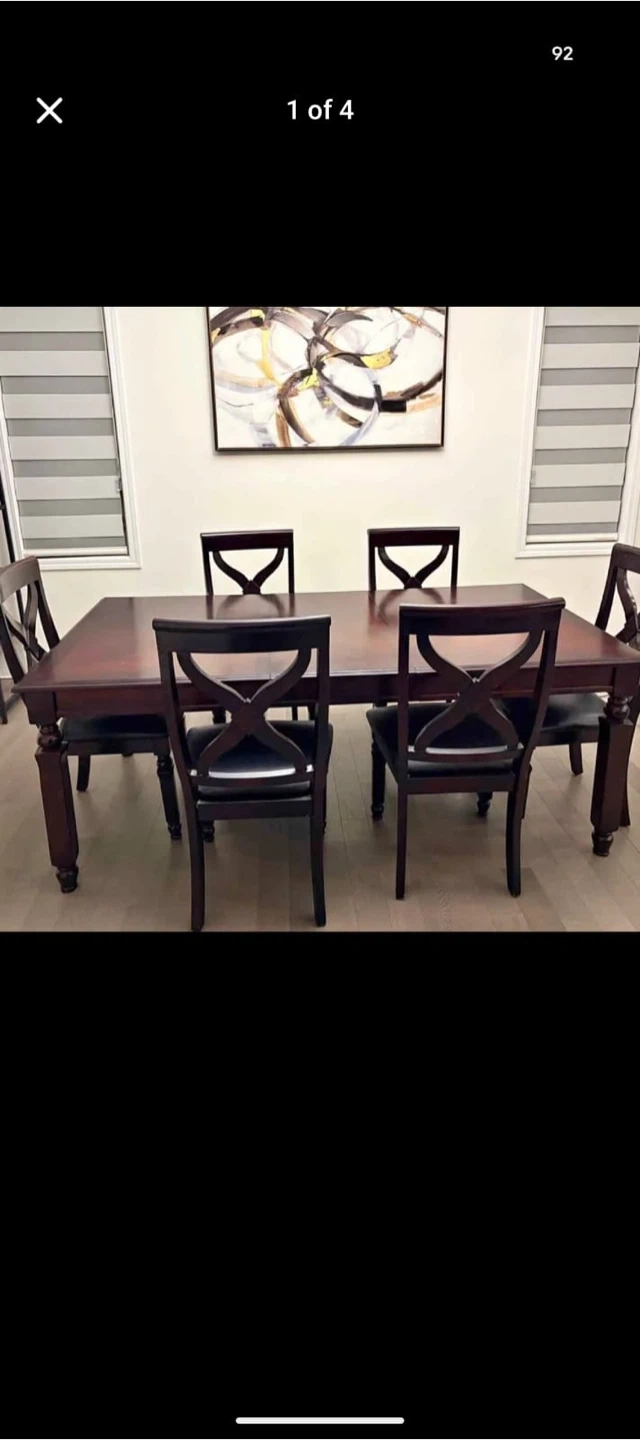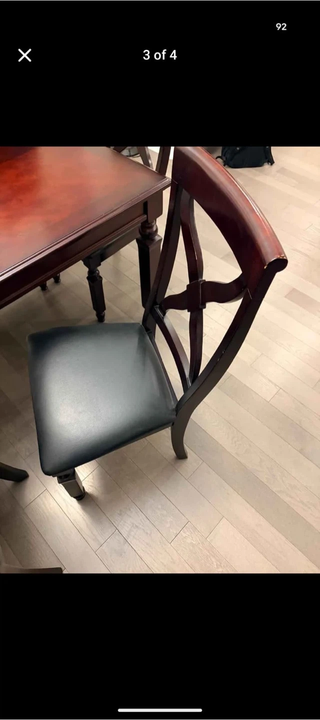 Buy & SellDining Table Set with 6 ChairsDining Table Set with 6 Chairs$450A dark wood dining table set with six chairs. The chairs have black faux leather seatsConditionLike newWHERE TO MEETCheck LocationView MapSELLERMariamMain181 review1 chats·1 favorites·61 viewsSEND CHAT TO SELLERHi Mariam! I’m interested in your listing.Hi Mariam! I’m interested in your listing.Get the Karrot app to chatSign In to chat