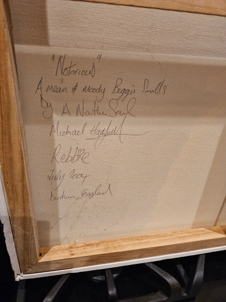 The Notorious Biggie Smalls Original Art on a wraparound canvas is a huge 30" x 30" x 4" painting showcasing the iconic rapper's image. This original piece of art captures the essence of Biggie Smalls in a unique and artistic way, making it a standout piece for any art collection. The wraparound design adds depth and dimension to the painting, creating a visually captivating display of the legendary artist's legacy.
