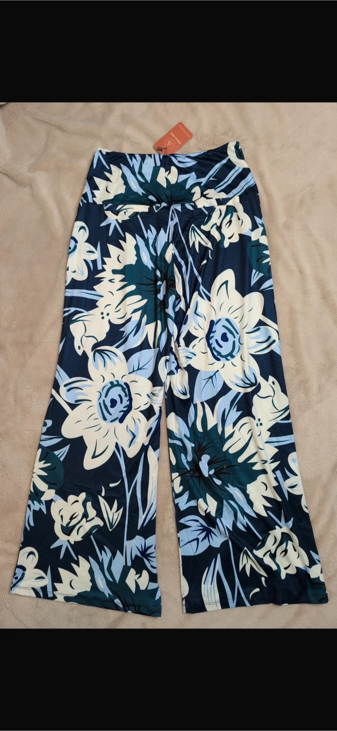 New with tag! Comfortable and stylish wide-leg palazzo pants with a vibrant floral print. These pants are made from a soft, lightweight fabric for a relaxed fit. High-waisted design with a stretchy waistband.