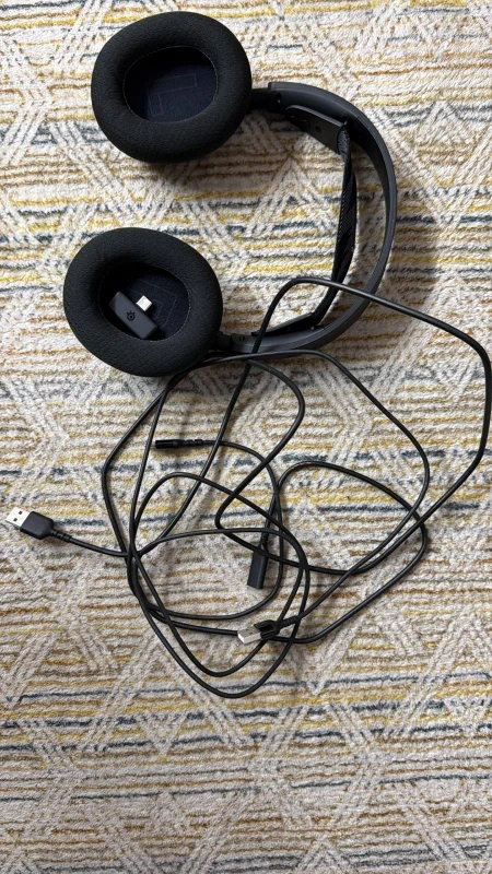 Selling a SteelSeries Arctis 7 gaming headset in black! It comes with the cable as shown in the picture. This headset is perfect for immersive gaming sessions. Get ready to level up your audio experience!