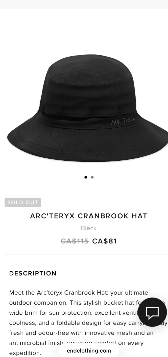 Selling an Arc'teryx Cranbrook Hat in black! It's a stylish bucket hat perfect for sun protection.