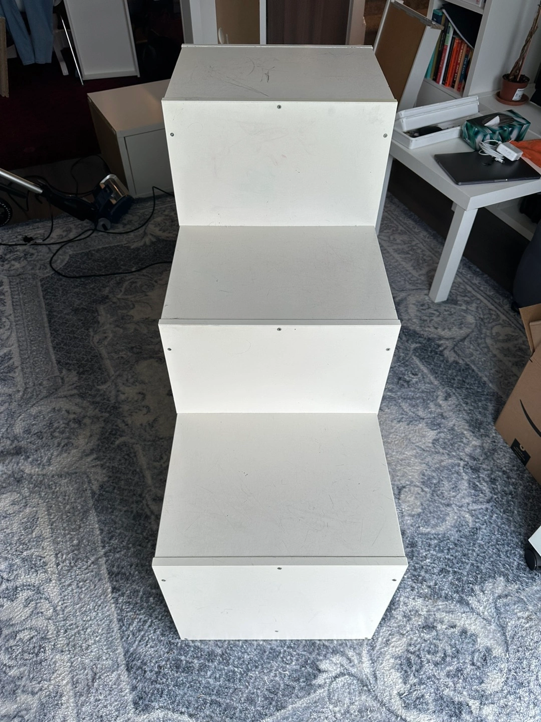 I need this gone so open to any offers. In case it’s not visible in the pictures, it has scratches and old marker scribbles that I unfortunately was not able to clean off. Storage bins don’t come with it but it has the tracks installed already.