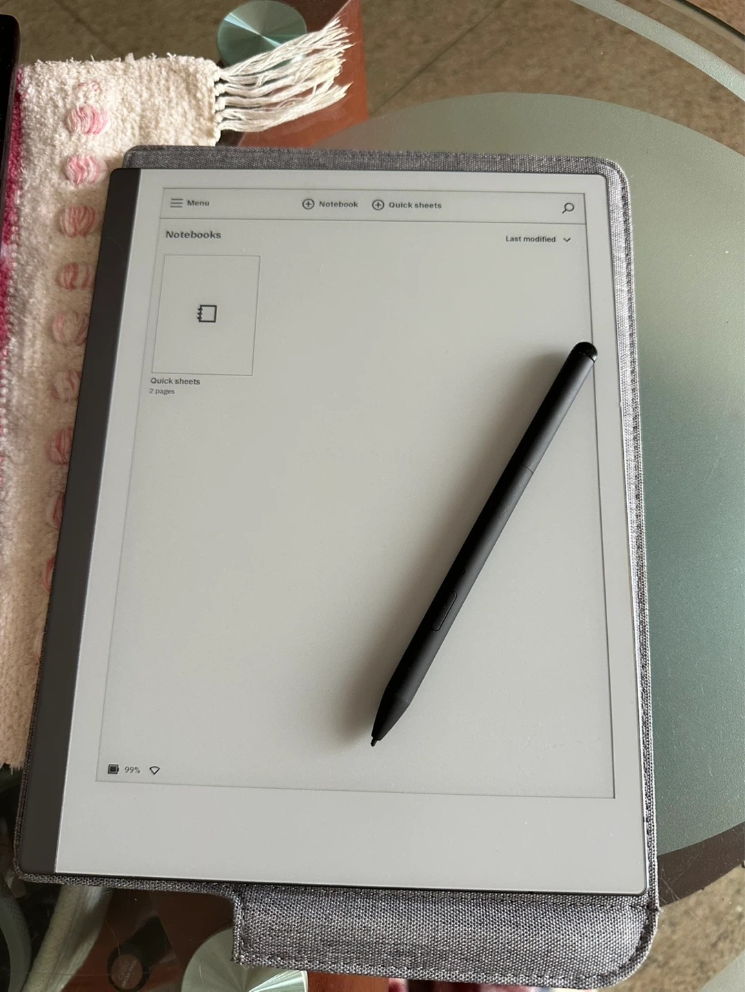 This reMarkable digital notebook comes with a grey folio case and stylus. It's perfect for note-taking and sketching with a paper-like feel.