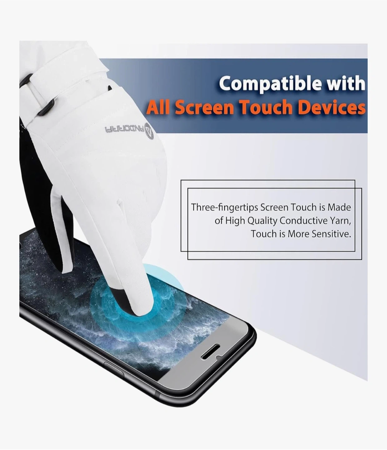 2.【Touchscreen】This 3 Finger touchscreen compatible ski glove lets you hand-hold a phone, pick up a call, and operate multi-touch functions without removing the ski gloves