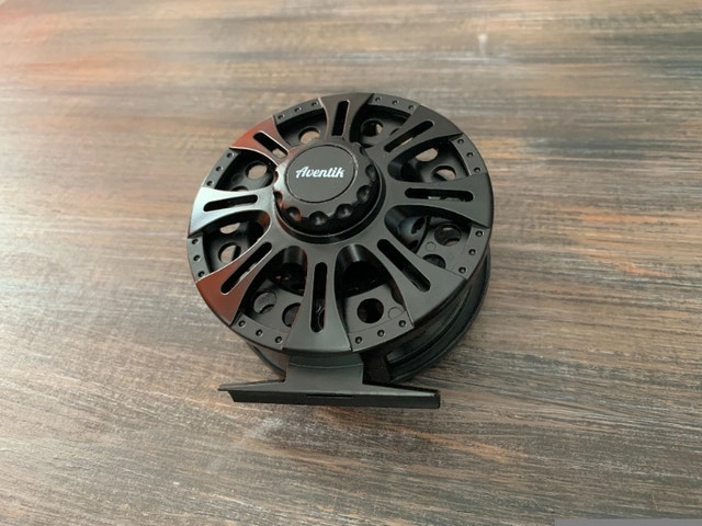 BRAND NEW NEVER USED - Aventik Classic III, is a new graphite large arbor fly reel, light weight and strong. Made from Polymeric material for durability and corrosion resistance. Large arbor design for backing capacity and fast retrieve. Rugged central disc drag for extremely smooth and consistent drag control. One-way bearing for easy conversion between hands, silent forward retrieve, and a clear clicker sound on drag Size info: 3/4WT - $50.00