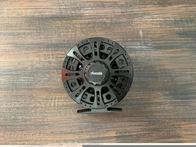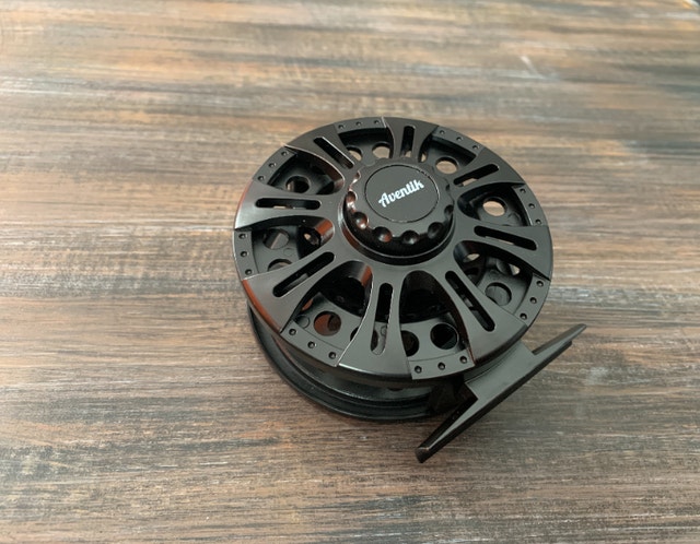 BRAND NEW NEVER USED - Aventik Classic III, is a new graphite large arbor fly reel, light weight and strong. Made from Polymeric material for durability and corrosion resistance. Large arbor design for backing capacity and fast retrieve. Rugged central disc drag for extremely smooth and consistent drag control. One-way bearing for easy conversion between hands, silent forward retrieve, and a clear clicker sound on drag Size info: 3/4WT - $50.00