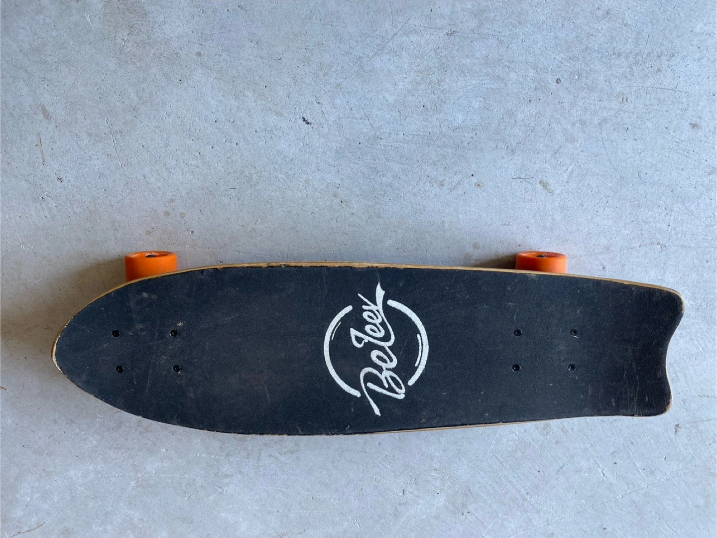 Selling a Beleev skateboard cruiser. It has a fun graphic design on the bottom and the Beleev logo on the top. It's in excellent used condition, ready for some fun rides!