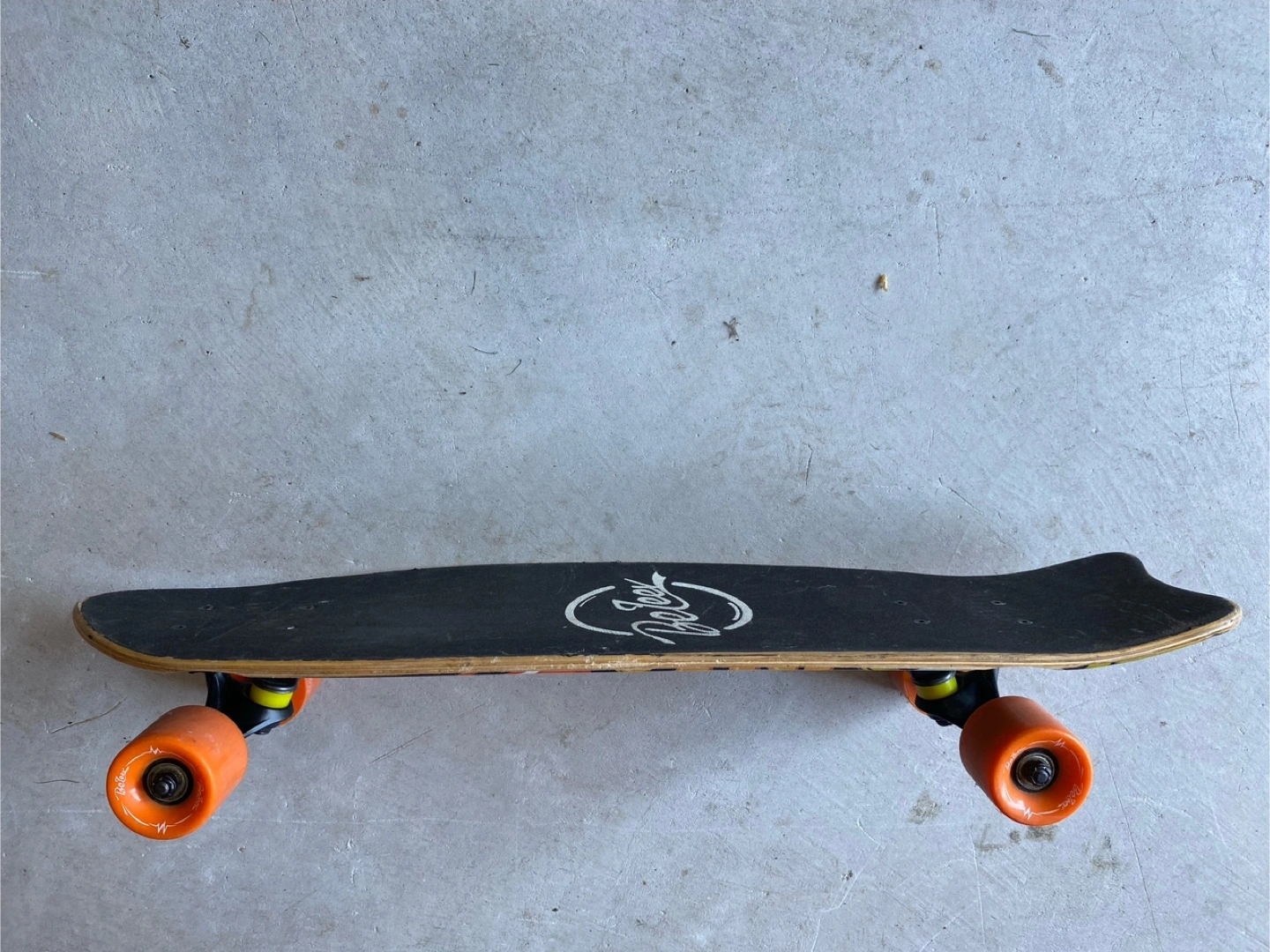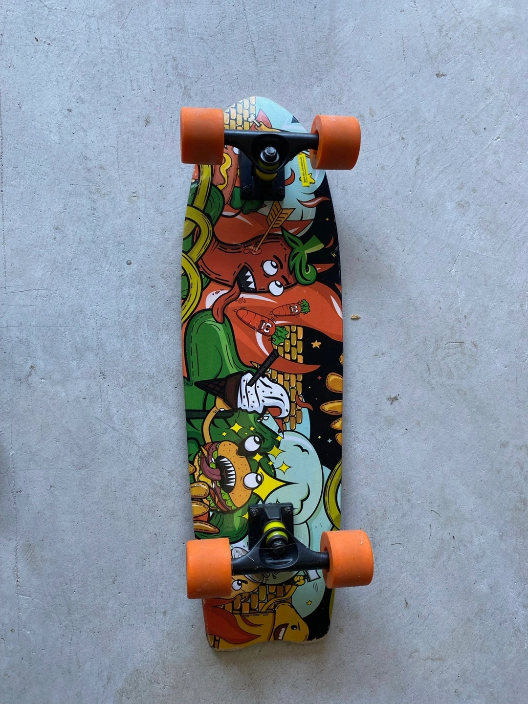 Selling a Beleev skateboard cruiser. It has a fun graphic design on the bottom and the Beleev logo on the top. It's in excellent used condition, ready for some fun rides!