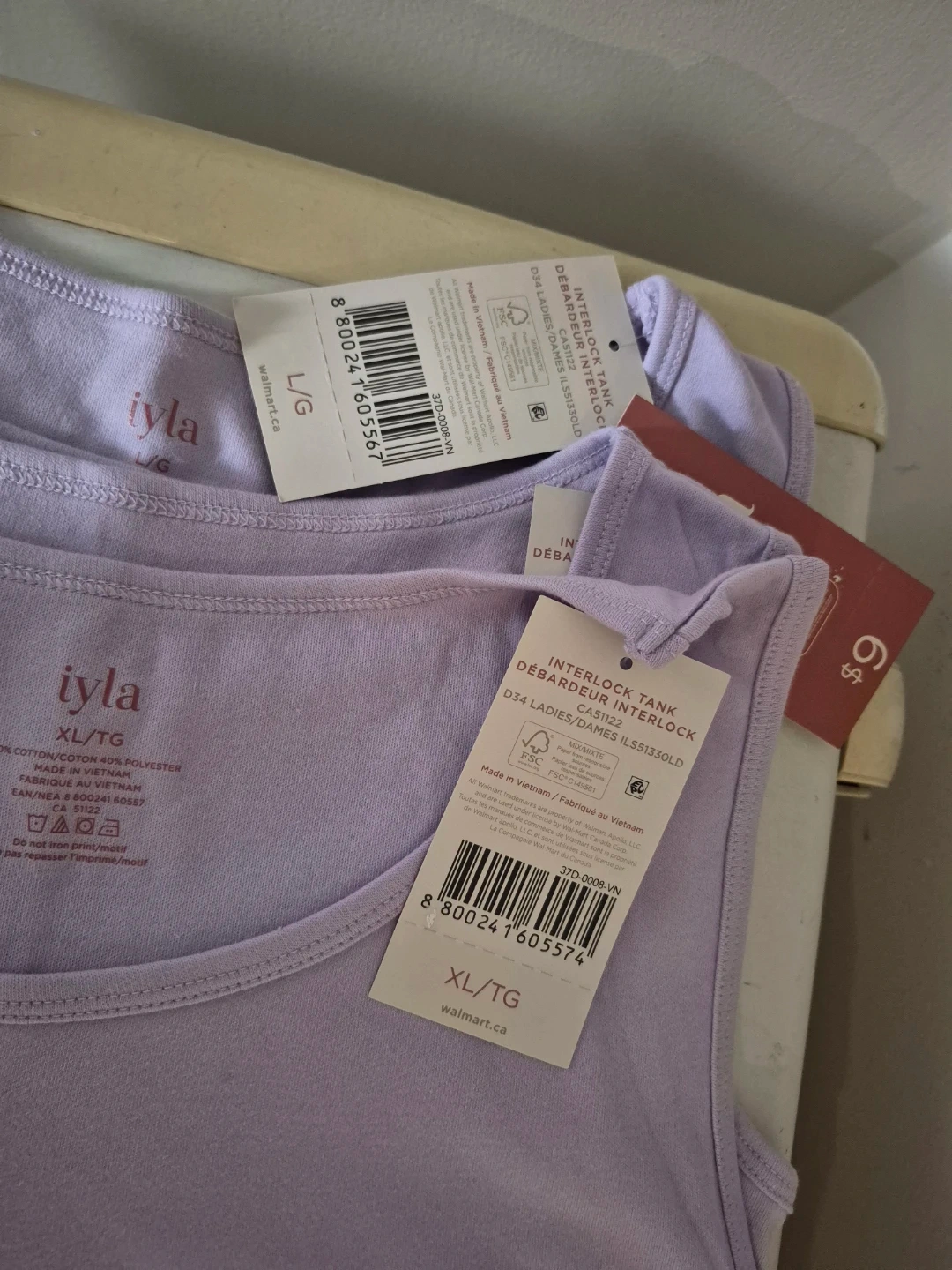 Comfy interlock knit tank tops from Iyla. Made of 60% cotton and 40% polyester. Great for layering or wearing on its own. Available in size Large and XL