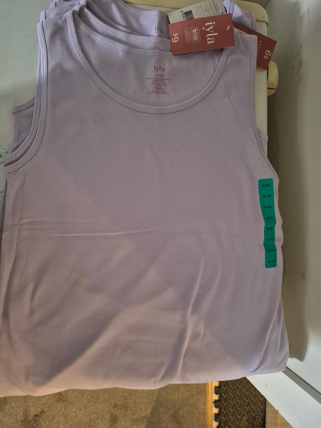 Comfy interlock knit tank tops from Iyla. Made of 60% cotton and 40% polyester. Great for layering or wearing on its own. Available in size Large and XL