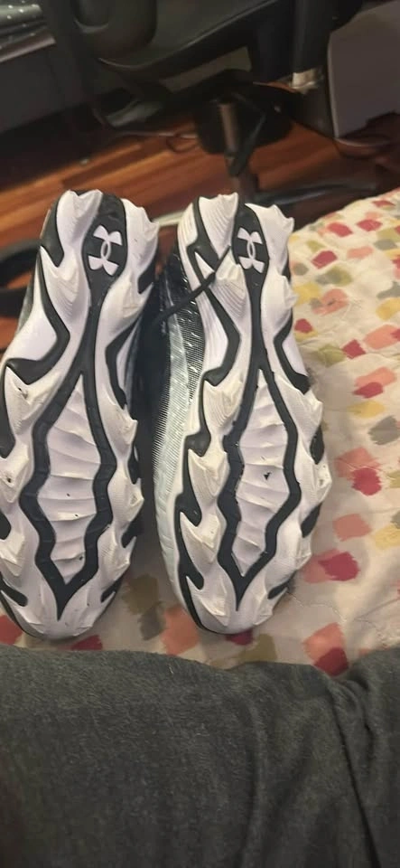 Selling my Under Armour Spotlight Hammer Wide football cleats (Size 10). Only used for one practice — basically brand new. Too small for me. Wide fit for extra comfort. Excellent traction and stability for football. They have high ankle support, great for linemen positions.