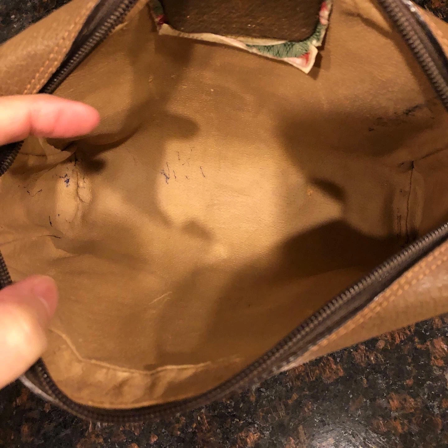 It has minor wear as a vintage piece, but it’s still clean and in good condition.