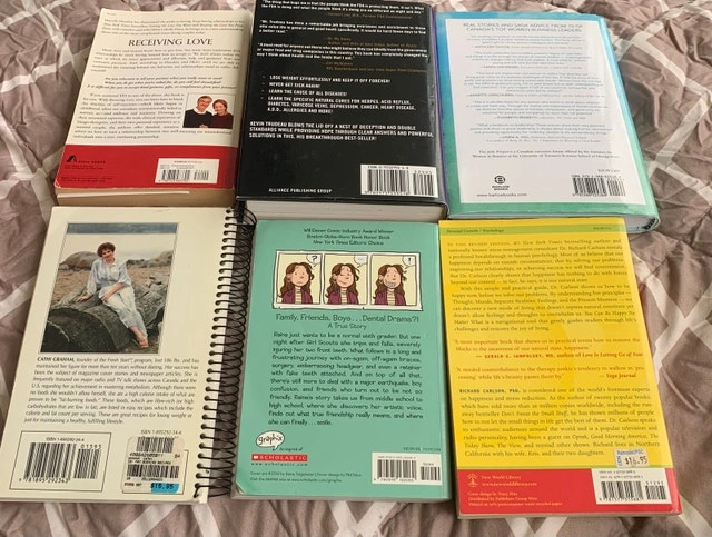 Offering a collection of used motivational books, perfect for anyone looking to enhance their personal development journey. Included are titles such as 'Receiving Love,' 'Natural Cures They Don't Want You to Know About,' 'The Collective Wisdom of High-Performing Women,' '201 Fat-Burning Recipes,' 'Smile,' and 'You Can Be Happy No Matter What.' As these books have been previously enjoyed, their condition varies; however, they remain in good, readable shape and are ready to inspire their next owner. The set is priced to reflect their used status. If the ad is up, the books are available!