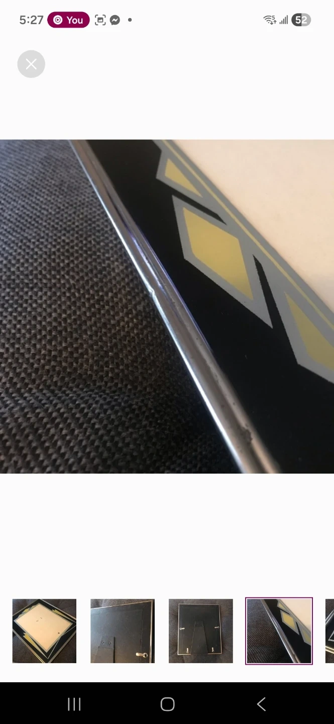 This photo frame features a bold black and yellow geometric design with a silver-toned border. It's suitable for displaying your favourite photos. It has a stand for tabletop display.